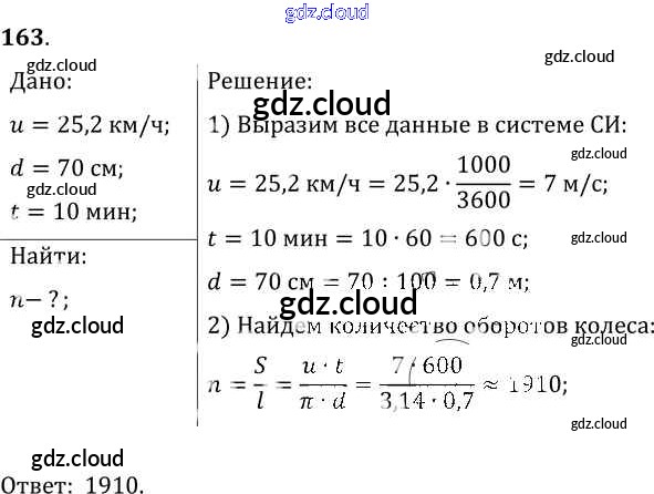 Ответ на задание 163 Сборник задач Физика за 7, 8, 9 (седьмой, восьмой, девятый) класс Лукашик, Иванова 2011