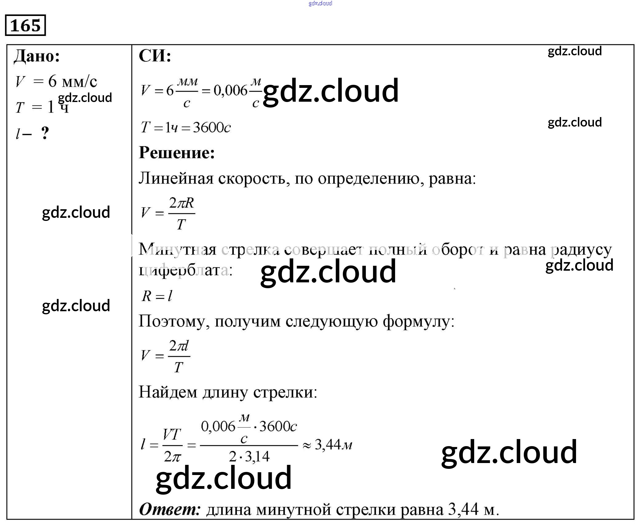 Ответ на задание 165 Сборник задач Физика за 7, 8, 9 (седьмой, восьмой, девятый) класс Лукашик, Иванова 2011