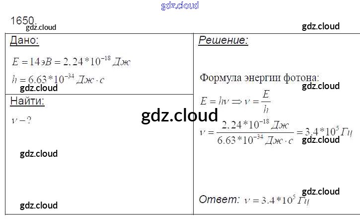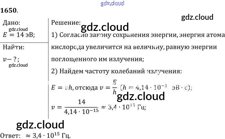 Ответ на задание 1650 Сборник задач Физика за 7, 8, 9 (седьмой, восьмой, девятый) класс Лукашик, Иванова 2011