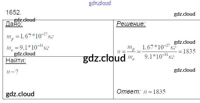 Ответ на задание 1652 Сборник задач Физика за 7, 8, 9 (седьмой, восьмой, девятый) класс Лукашик, Иванова 2011