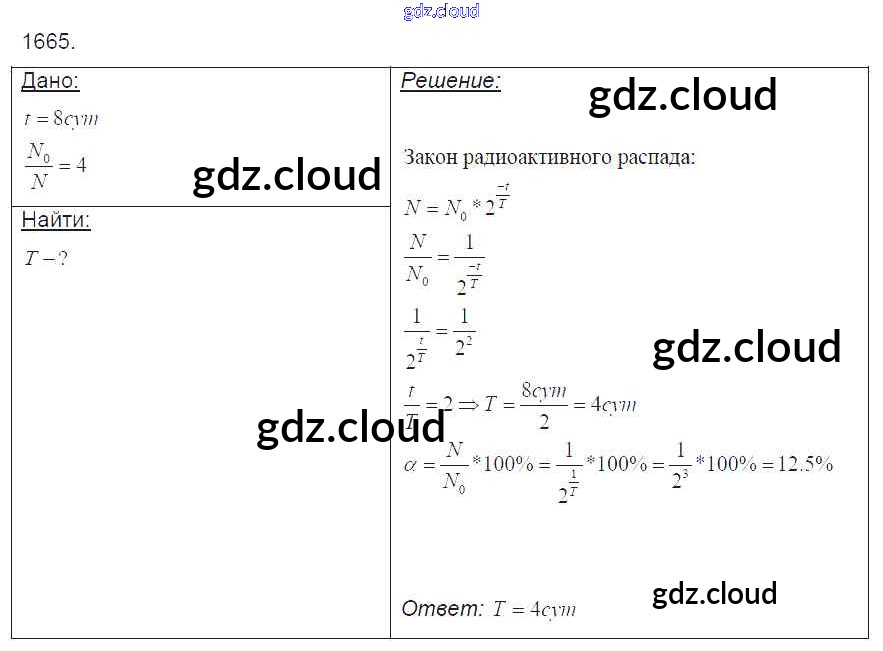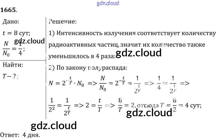 Ответ на задание 1665 Сборник задач Физика за 7, 8, 9 (седьмой, восьмой, девятый) класс Лукашик, Иванова 2011