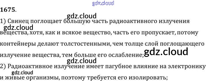 Ответ на задание 1675 Сборник задач Физика за 7, 8, 9 (седьмой, восьмой, девятый) класс Лукашик, Иванова 2011