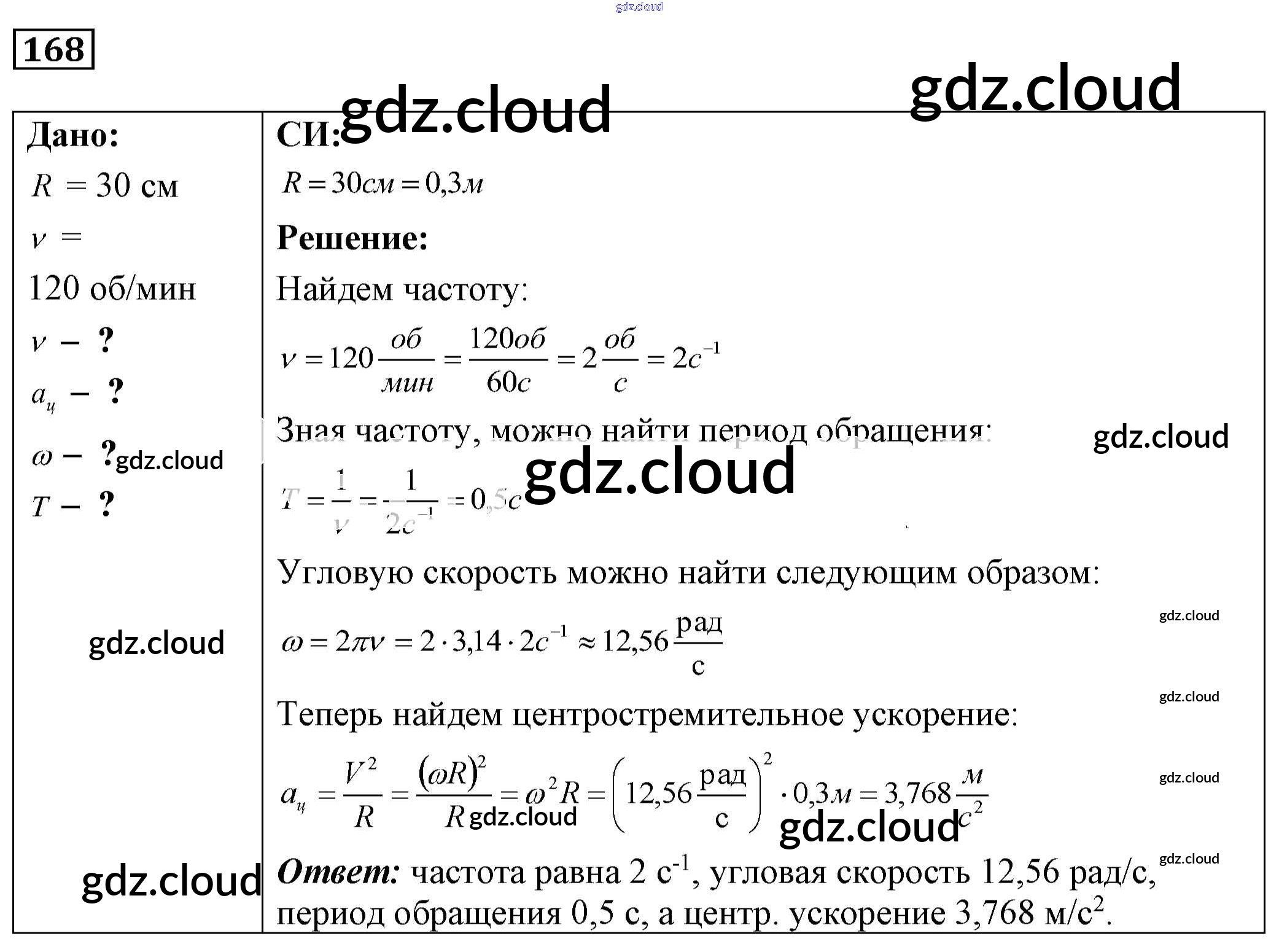 Ответ на задание 168 Сборник задач Физика за 7, 8, 9 (седьмой, восьмой, девятый) класс Лукашик, Иванова 2011