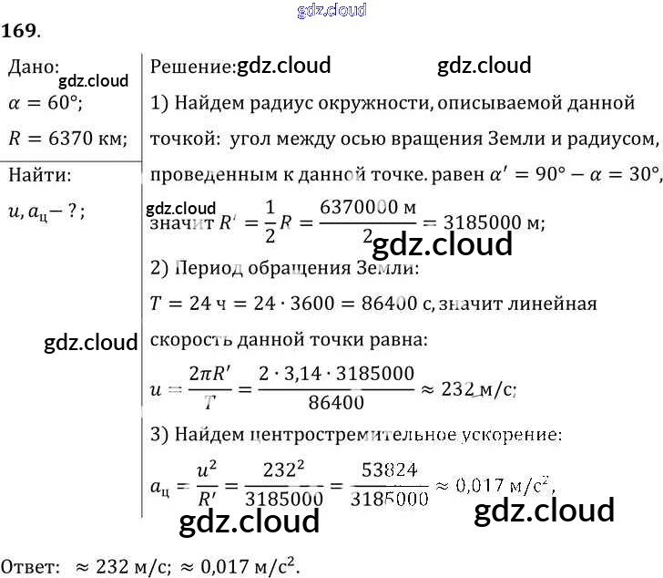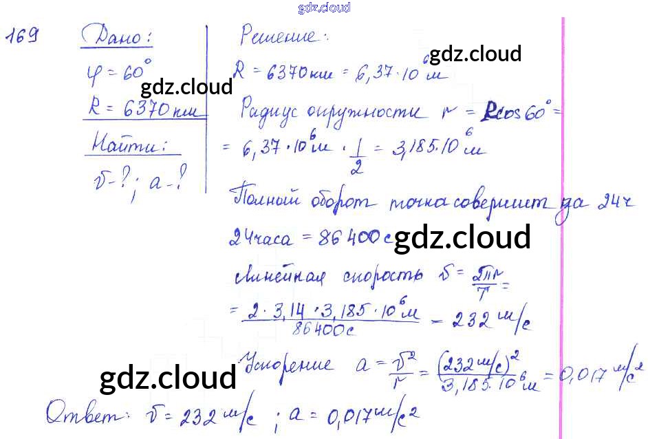 Ответ на задание 169 Сборник задач Физика за 7, 8, 9 (седьмой, восьмой, девятый) класс Лукашик, Иванова 2011