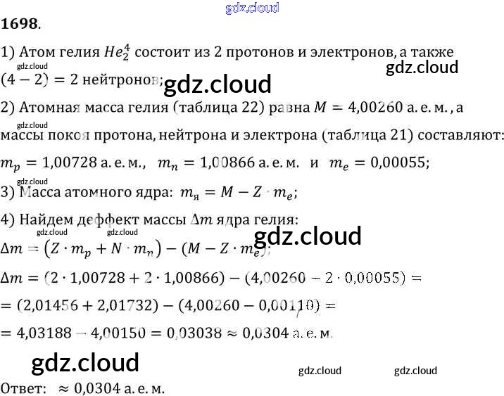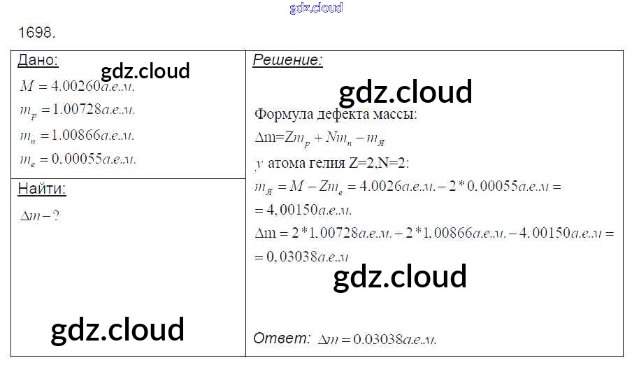 Ответ на задание 1698 Сборник задач Физика за 7, 8, 9 (седьмой, восьмой, девятый) класс Лукашик, Иванова 2011