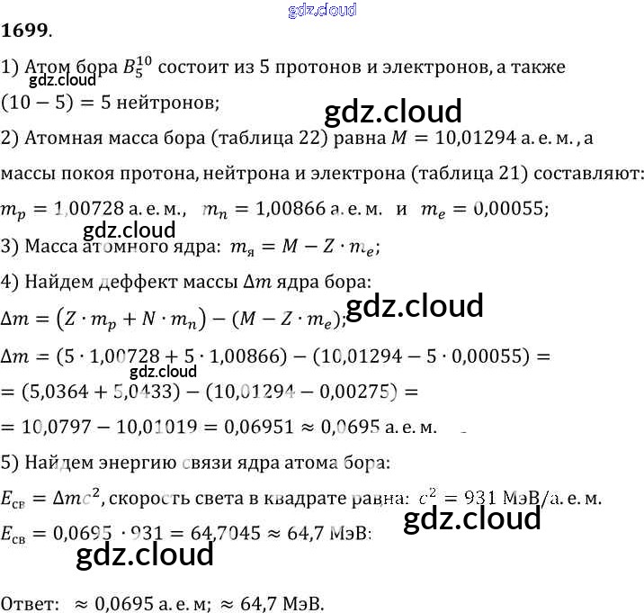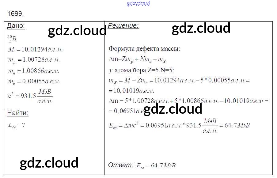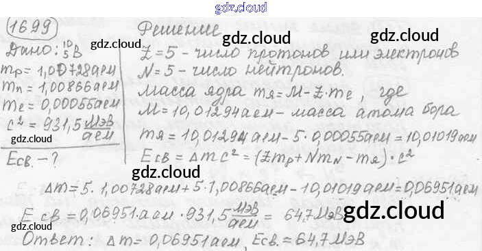 Ответ на задание 1699 Сборник задач Физика за 7, 8, 9 (седьмой, восьмой, девятый) класс Лукашик, Иванова 2011