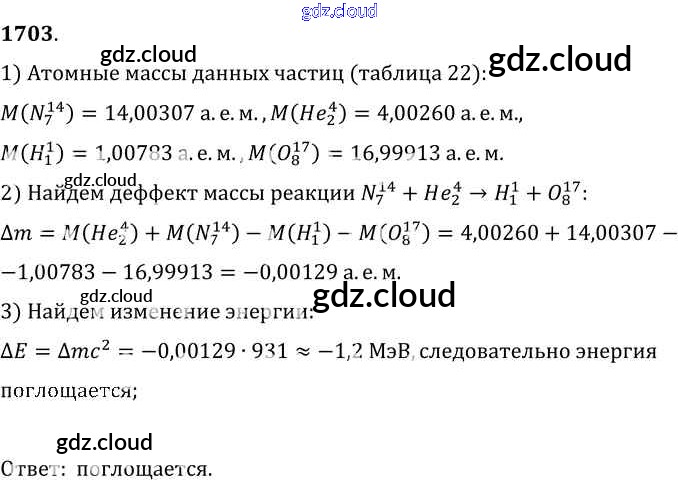 Ответ на задание 1703 Сборник задач Физика за 7, 8, 9 (седьмой, восьмой, девятый) класс Лукашик, Иванова 2011