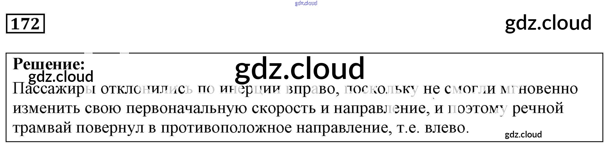 Ответ на задание 172 Сборник задач Физика за 7, 8, 9 (седьмой, восьмой, девятый) класс Лукашик, Иванова 2011