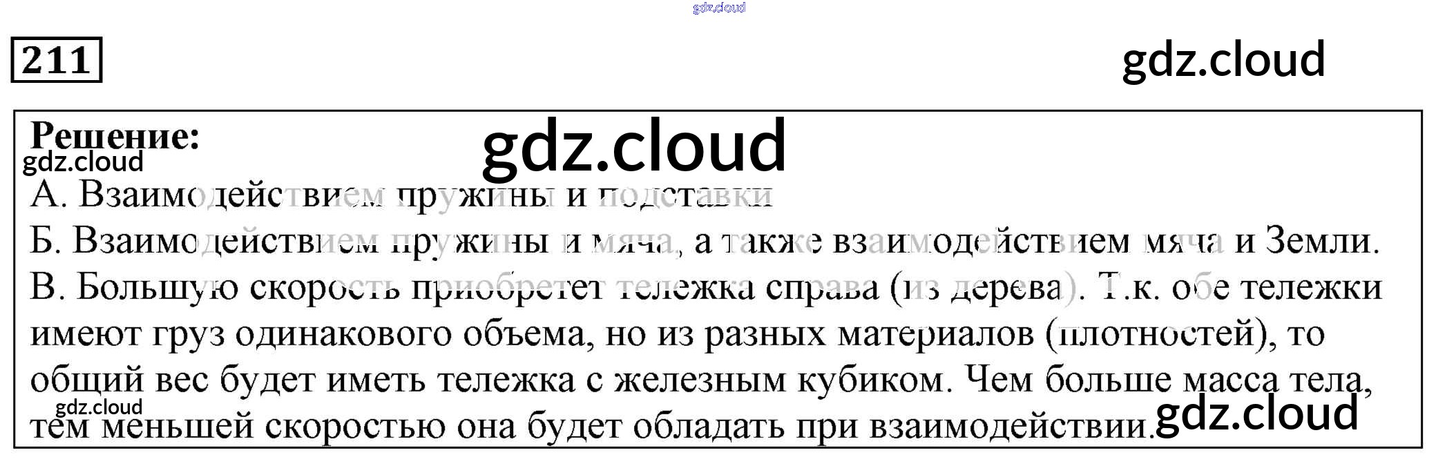 Ответ на задание 211 Сборник задач Физика за 7, 8, 9 (седьмой, восьмой, девятый) класс Лукашик, Иванова 2011