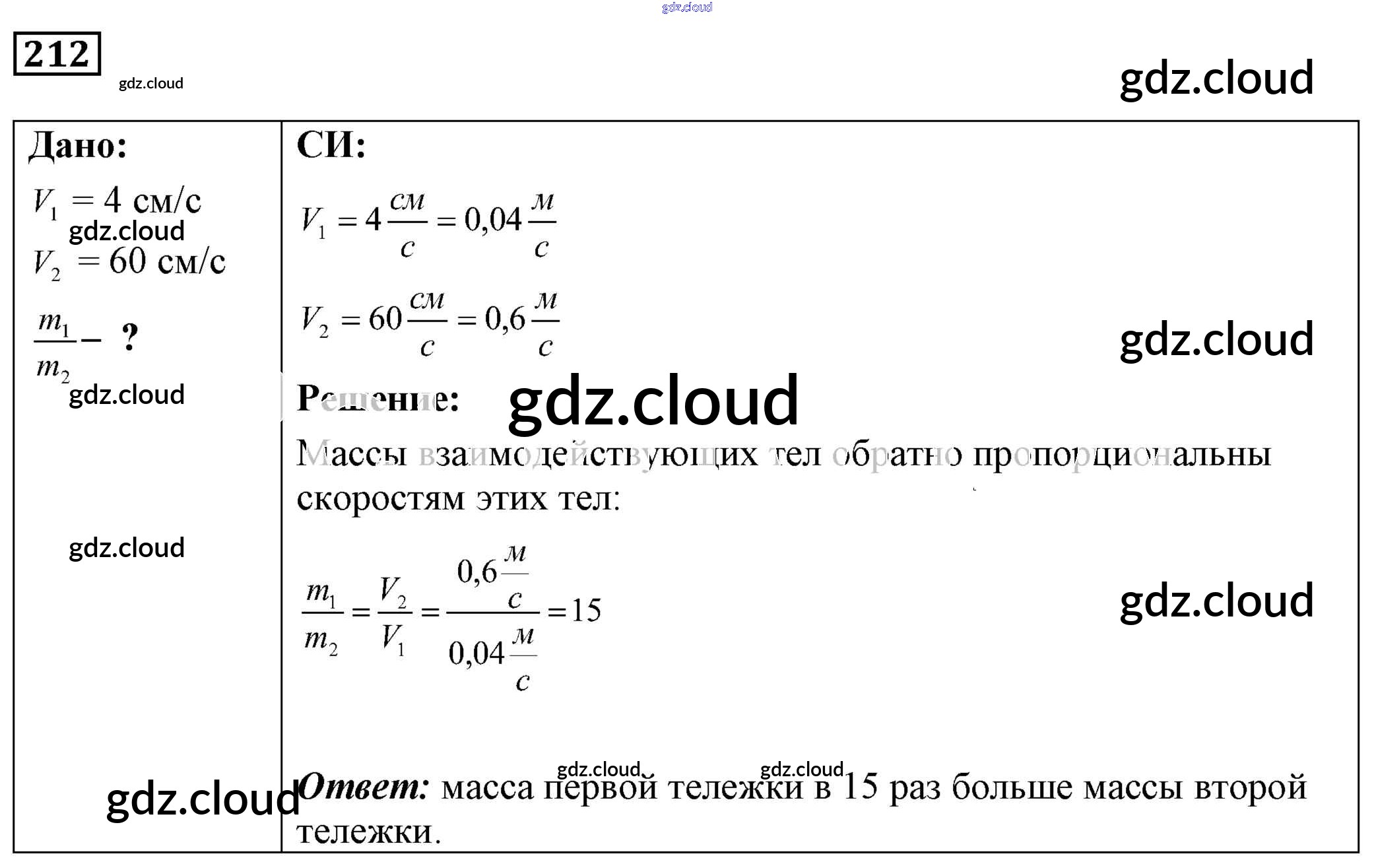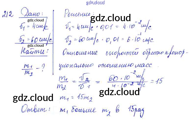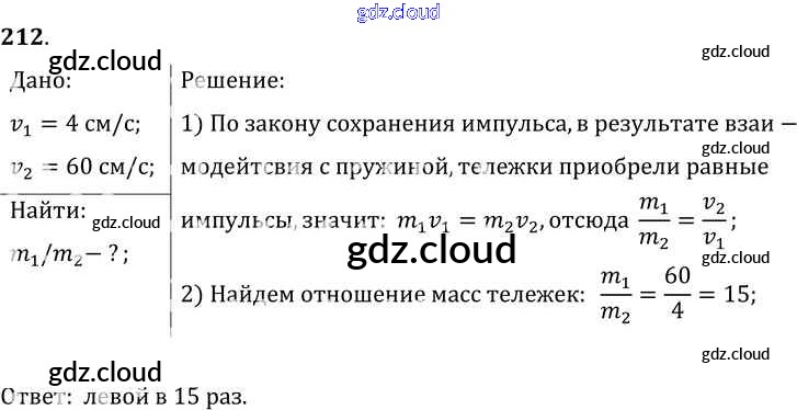 Ответ на задание 212 Сборник задач Физика за 7, 8, 9 (седьмой, восьмой, девятый) класс Лукашик, Иванова 2011