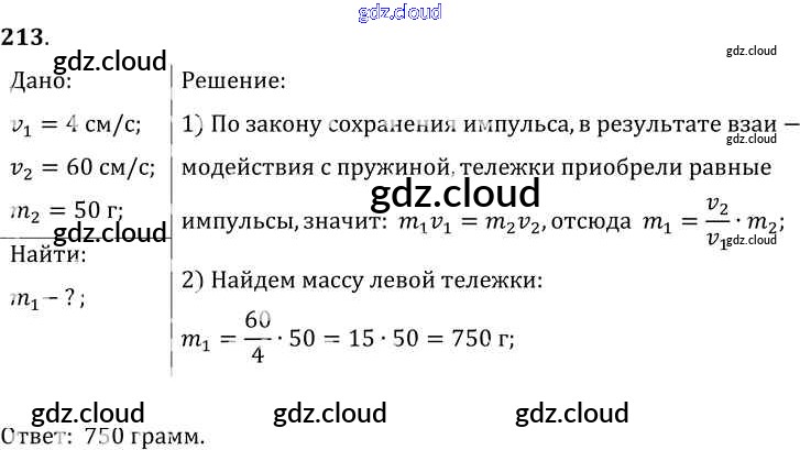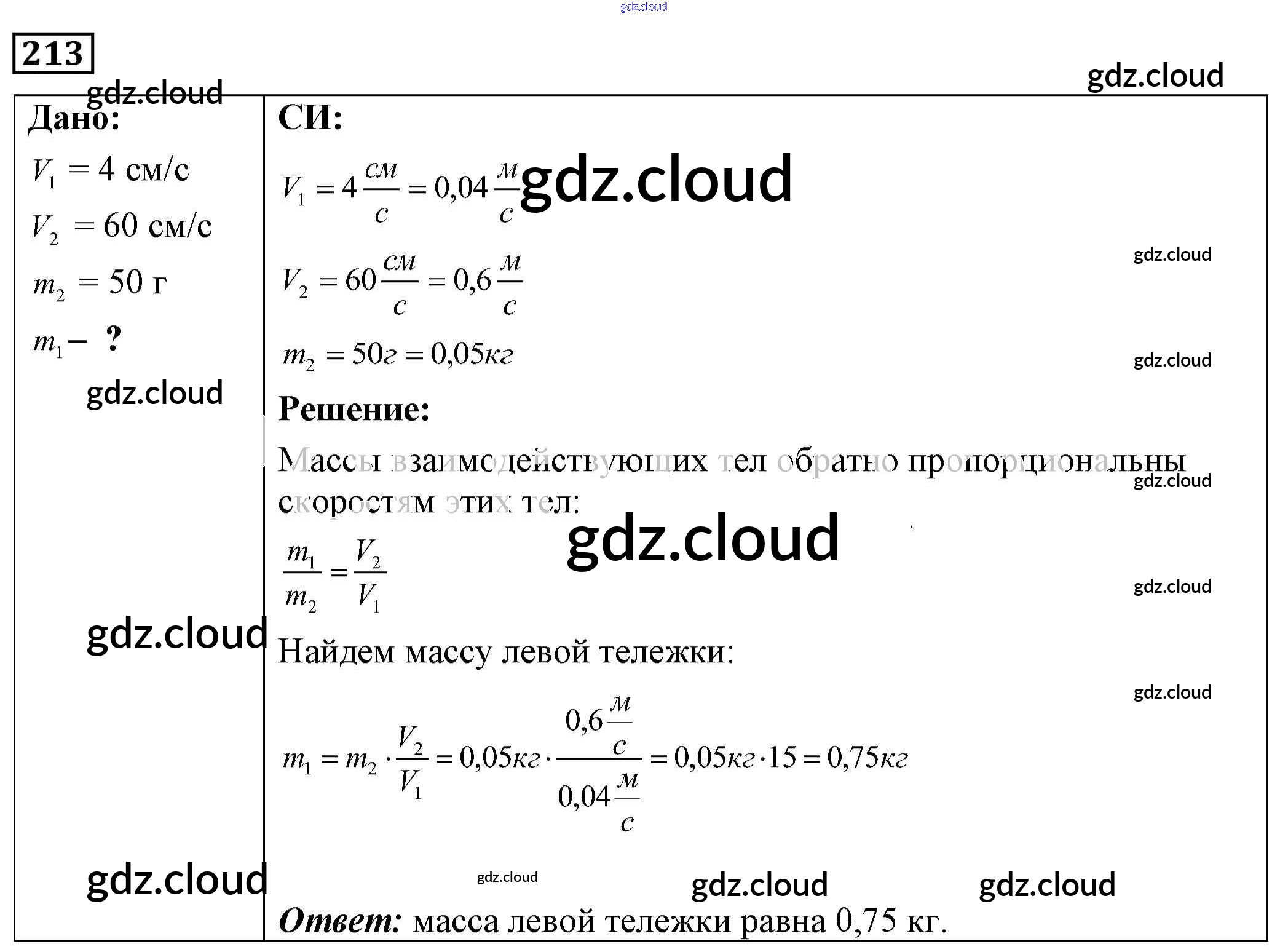 Ответ на задание 213 Сборник задач Физика за 7, 8, 9 (седьмой, восьмой, девятый) класс Лукашик, Иванова 2011