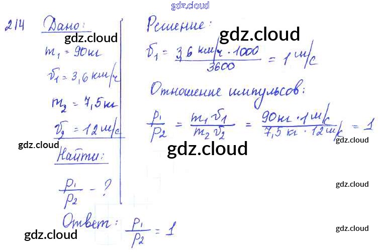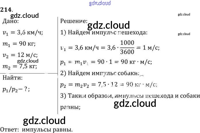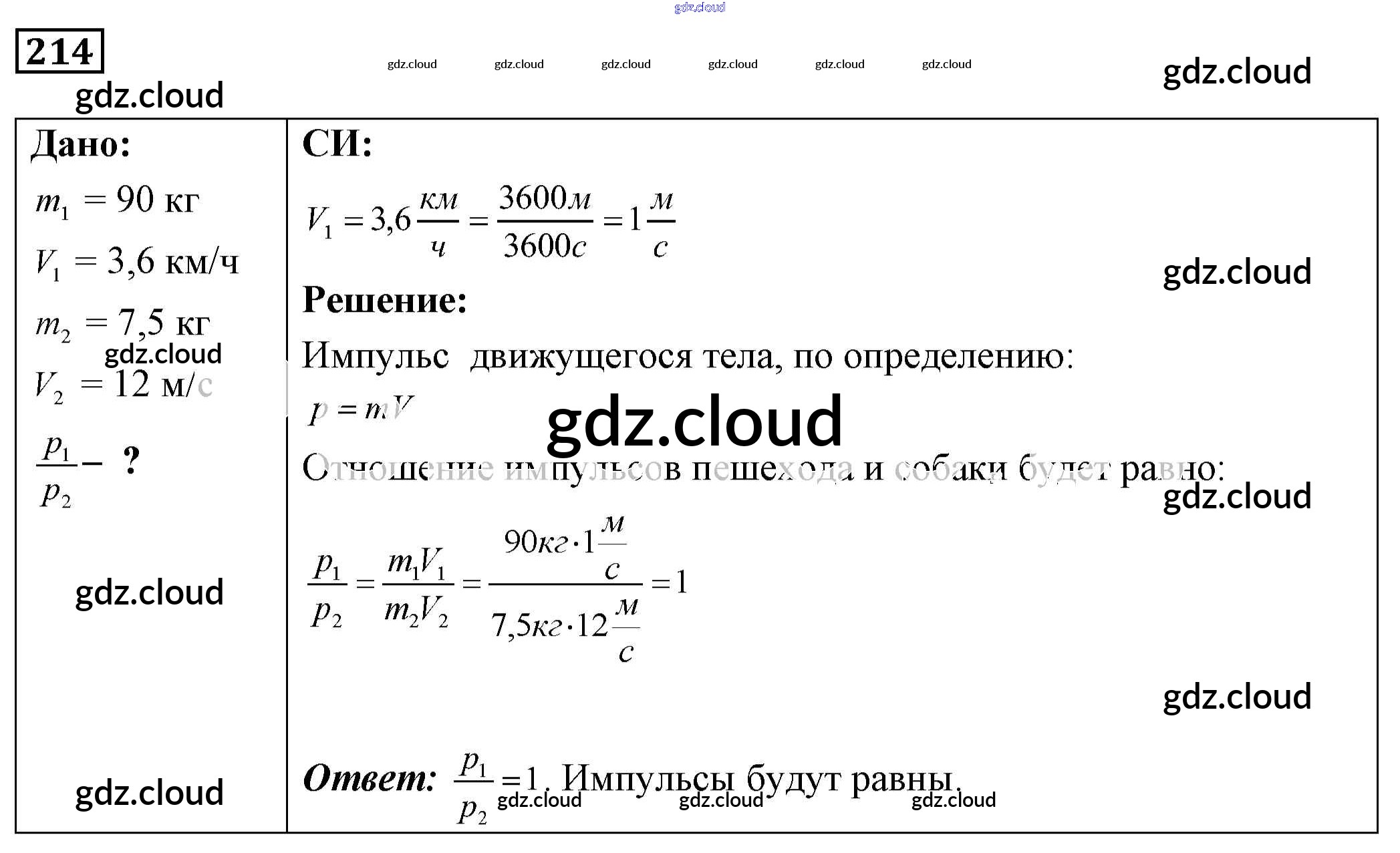 Ответ на задание 214 Сборник задач Физика за 7, 8, 9 (седьмой, восьмой, девятый) класс Лукашик, Иванова 2011