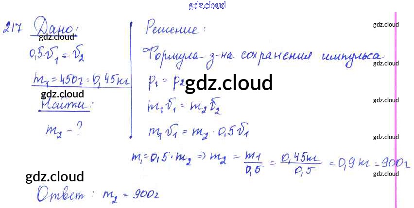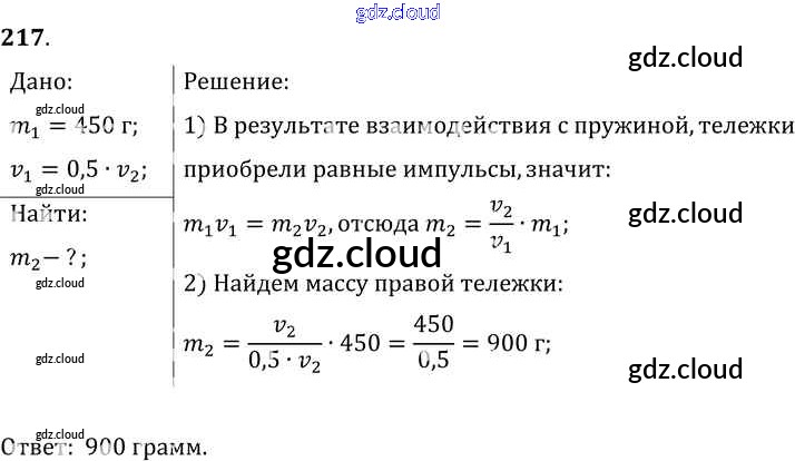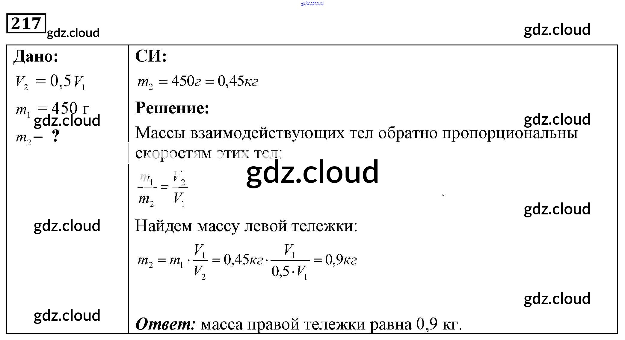 Ответ на задание 217 Сборник задач Физика за 7, 8, 9 (седьмой, восьмой, девятый) класс Лукашик, Иванова 2011