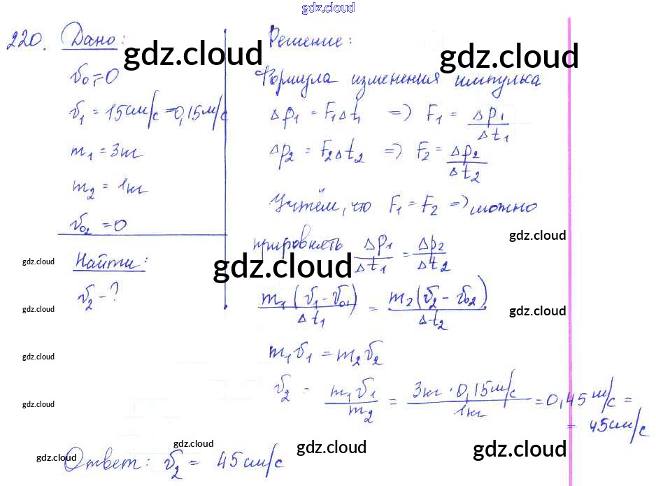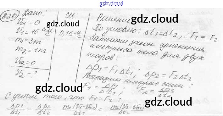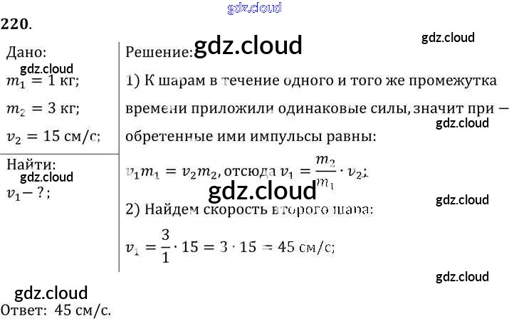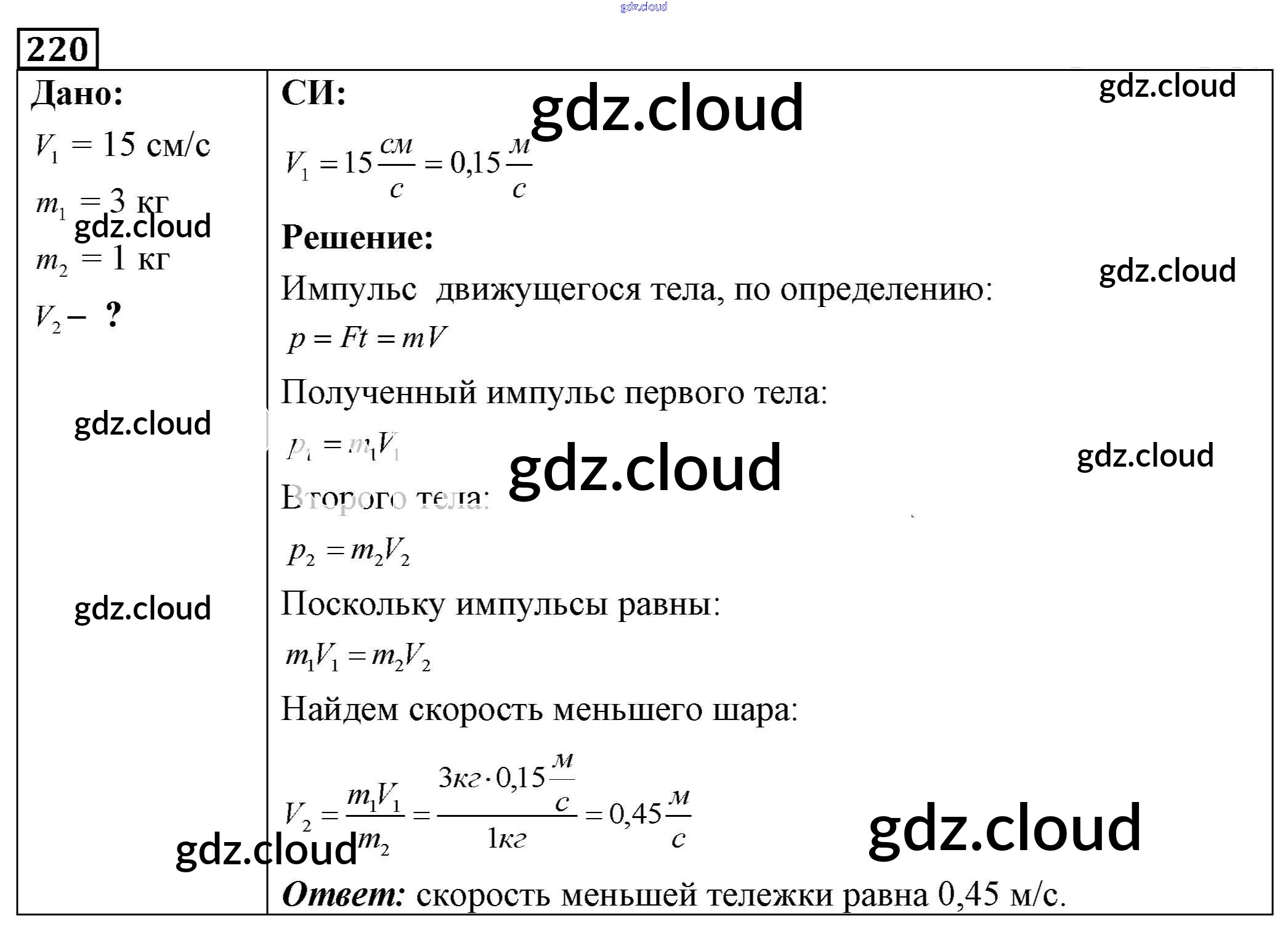 Ответ на задание 220 Сборник задач Физика за 7, 8, 9 (седьмой, восьмой, девятый) класс Лукашик, Иванова 2011