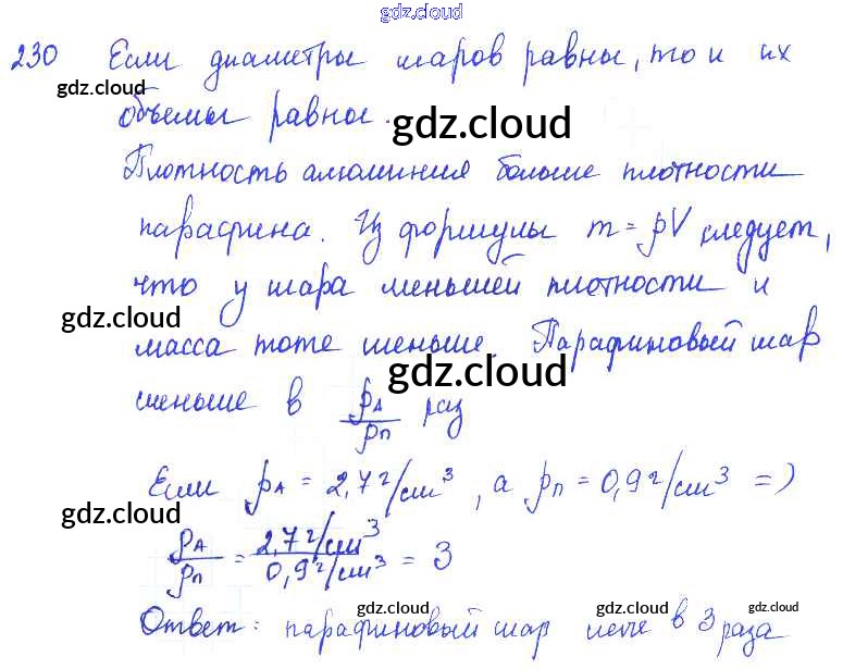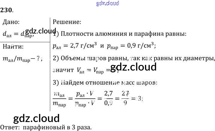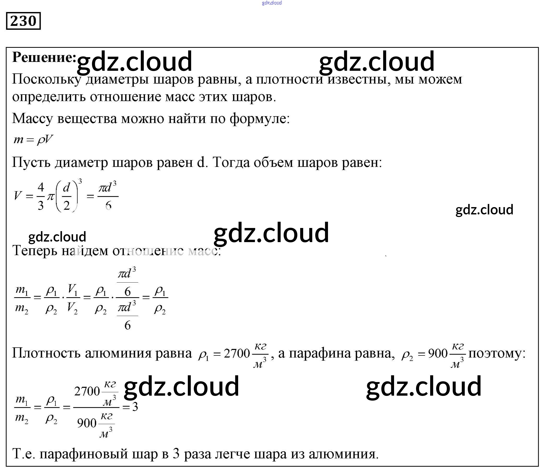 Ответ на задание 230 Сборник задач Физика за 7, 8, 9 (седьмой, восьмой, девятый) класс Лукашик, Иванова 2011