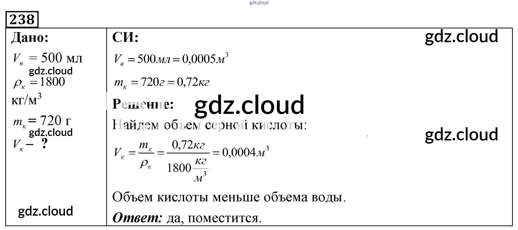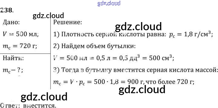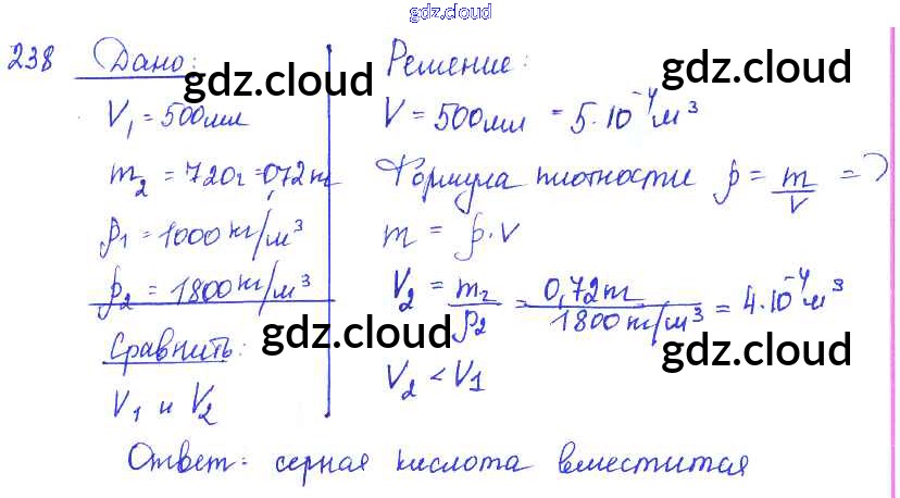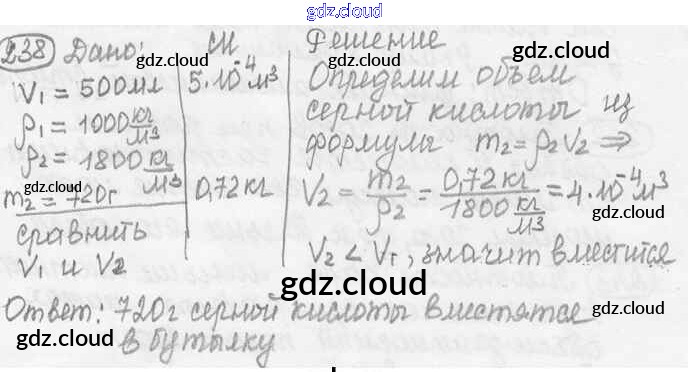 Ответ на задание 238 Сборник задач Физика за 7, 8, 9 (седьмой, восьмой, девятый) класс Лукашик, Иванова 2011
