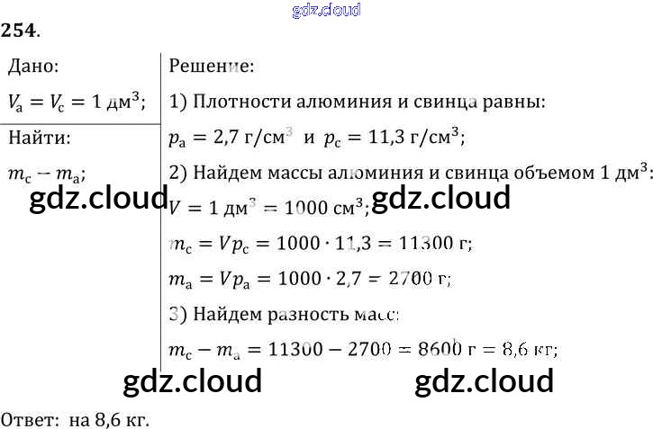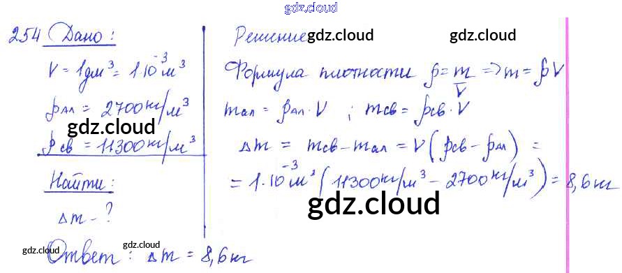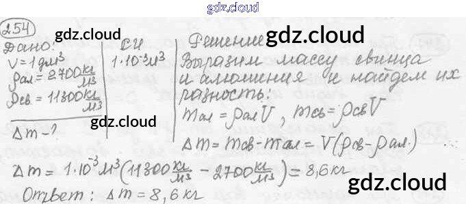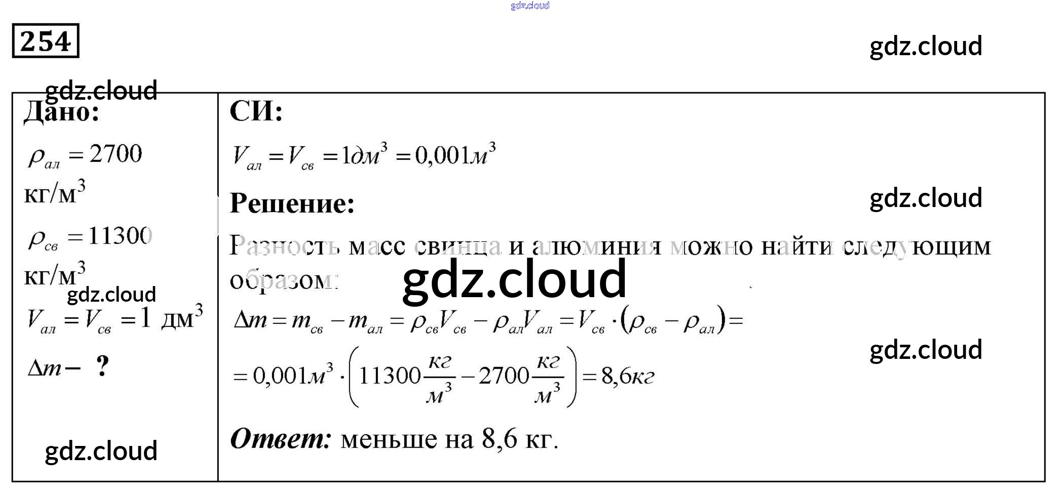 Ответ на задание 254 Сборник задач Физика за 7, 8, 9 (седьмой, восьмой, девятый) класс Лукашик, Иванова 2011