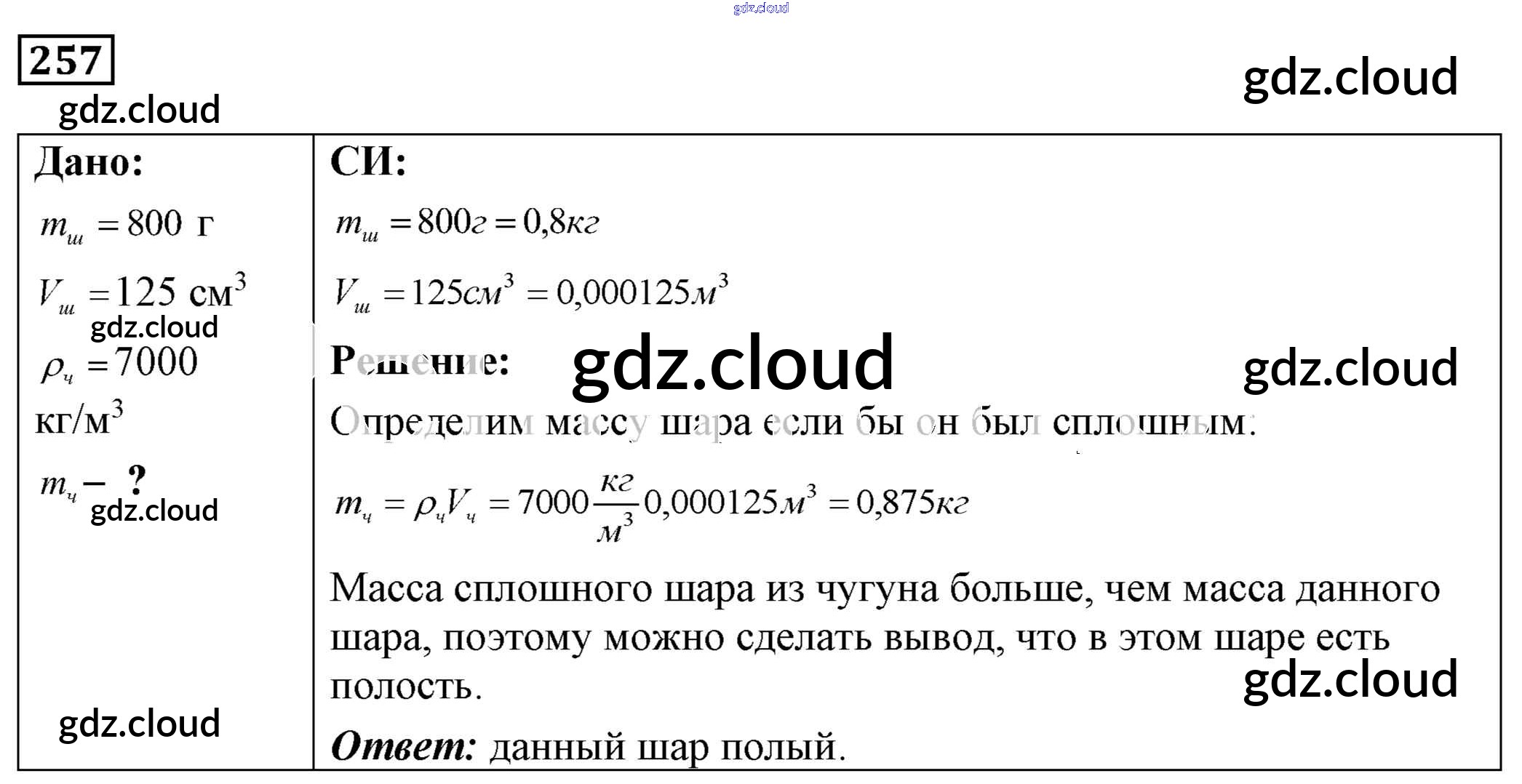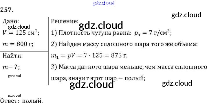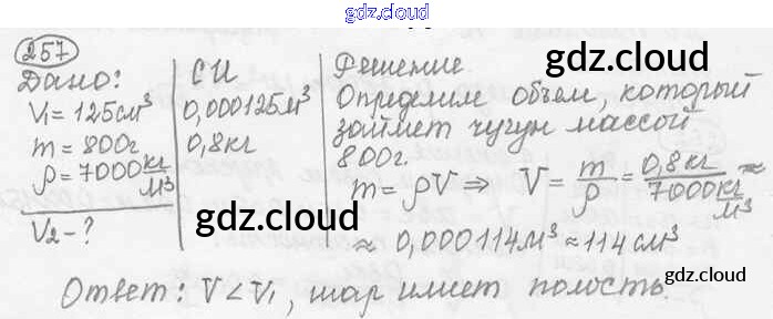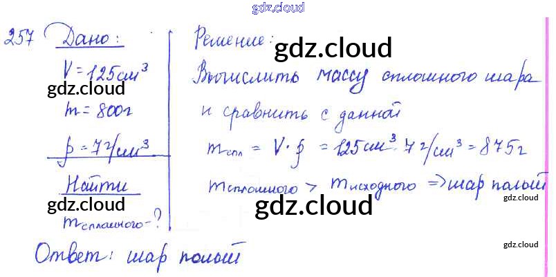 Ответ на задание 257 Сборник задач Физика за 7, 8, 9 (седьмой, восьмой, девятый) класс Лукашик, Иванова 2011