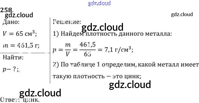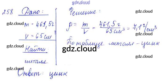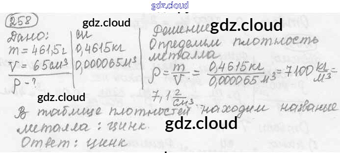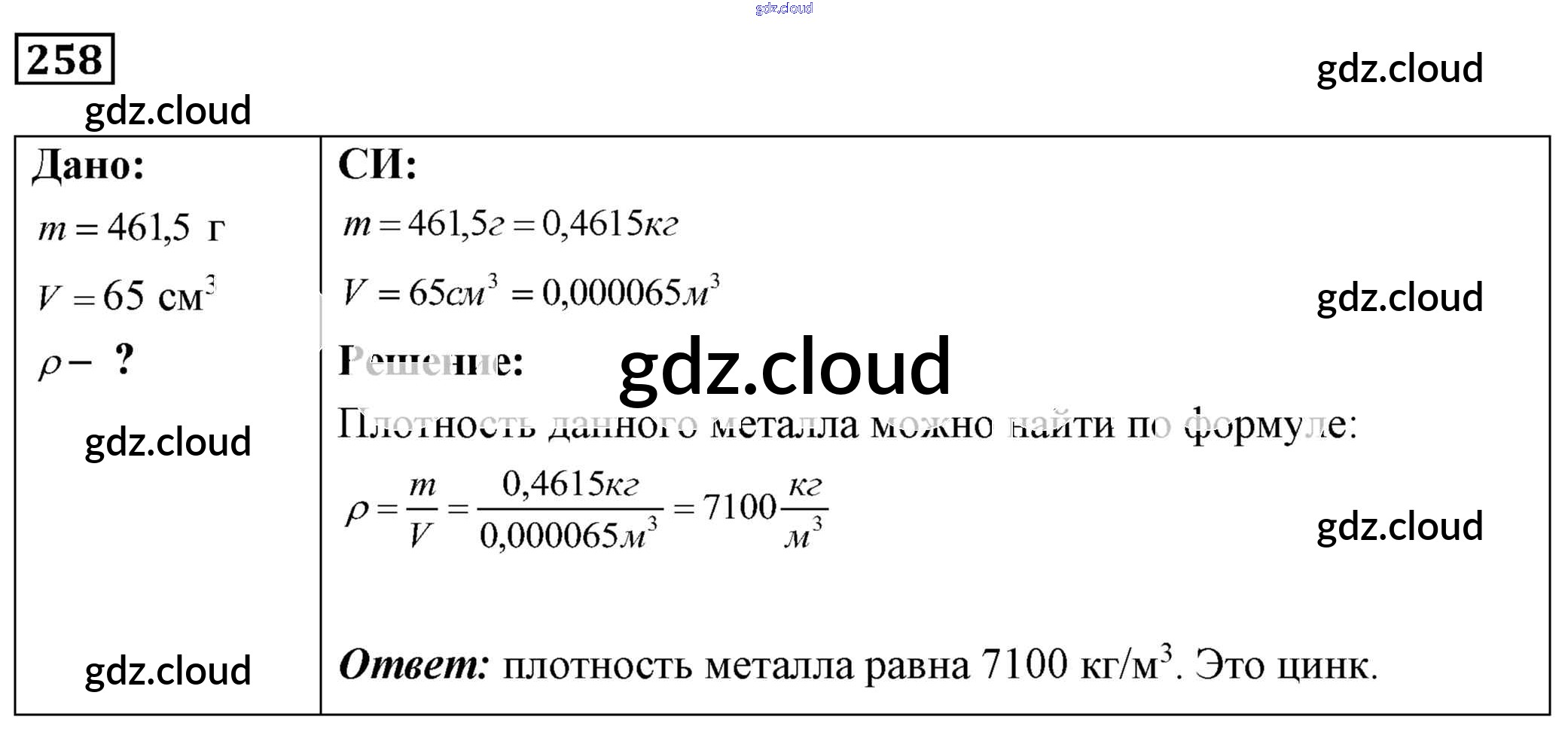Ответ на задание 258 Сборник задач Физика за 7, 8, 9 (седьмой, восьмой, девятый) класс Лукашик, Иванова 2011