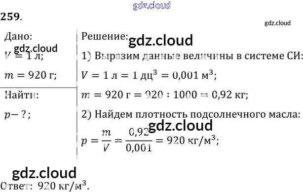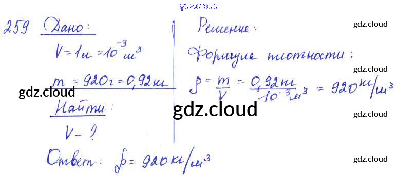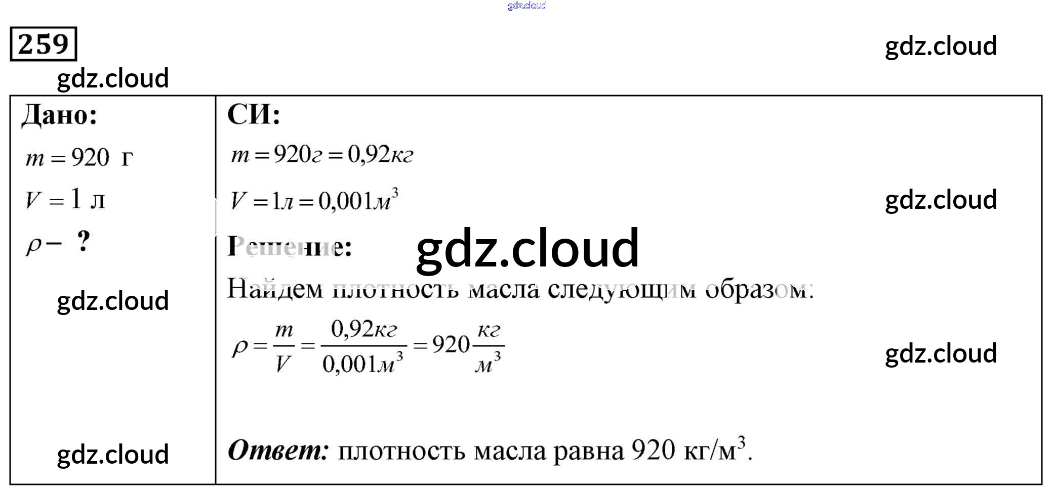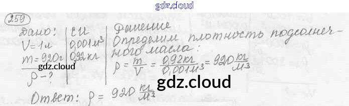 Ответ на задание 259 Сборник задач Физика за 7, 8, 9 (седьмой, восьмой, девятый) класс Лукашик, Иванова 2011
