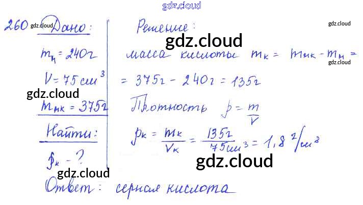 Ответ на задание 260 Сборник задач Физика за 7, 8, 9 (седьмой, восьмой, девятый) класс Лукашик, Иванова 2011