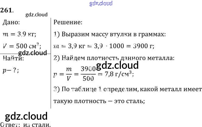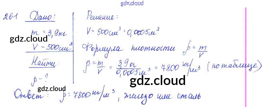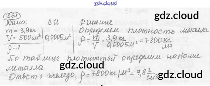 Ответ на задание 261 Сборник задач Физика за 7, 8, 9 (седьмой, восьмой, девятый) класс Лукашик, Иванова 2011