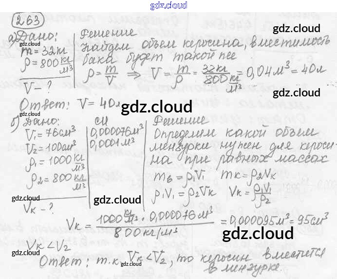 Ответ на задание 263 Сборник задач Физика за 7, 8, 9 (седьмой, восьмой, девятый) класс Лукашик, Иванова 2011