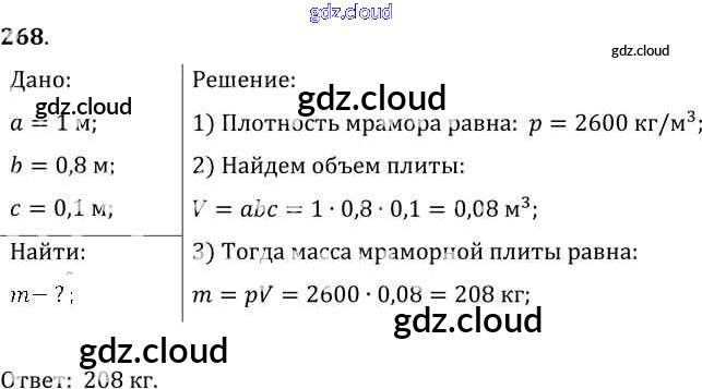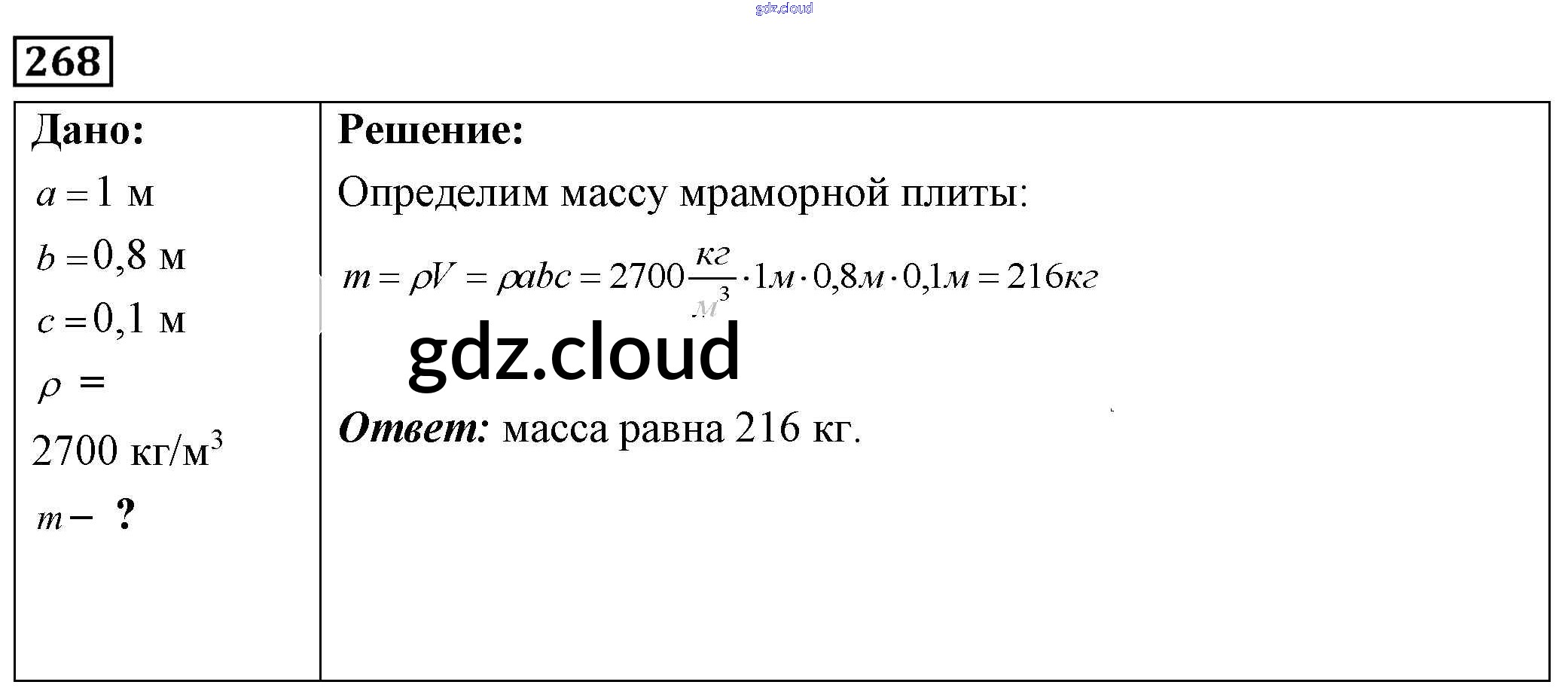 Ответ на задание 268 Сборник задач Физика за 7, 8, 9 (седьмой, восьмой, девятый) класс Лукашик, Иванова 2011