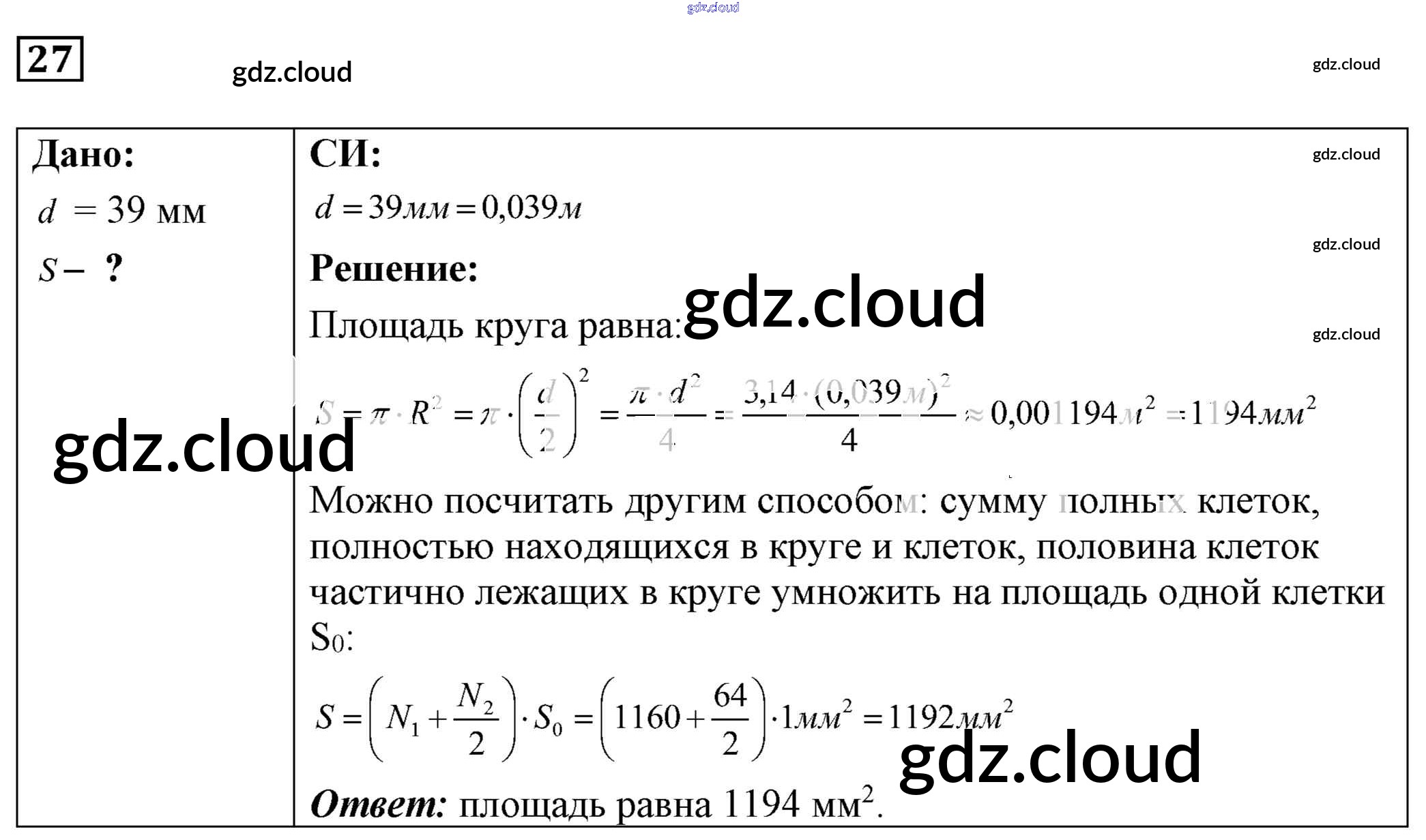 Ответ на задание 27 Сборник задач Физика за 7, 8, 9 (седьмой, восьмой, девятый) класс Лукашик, Иванова 2011