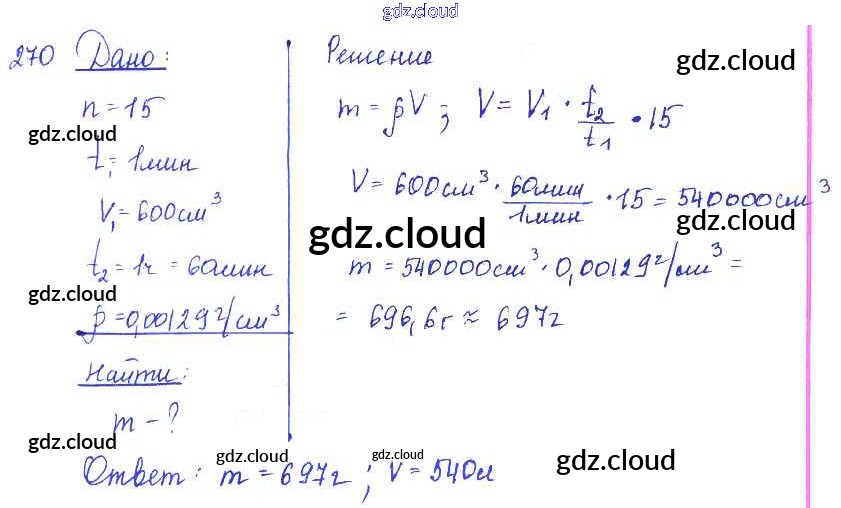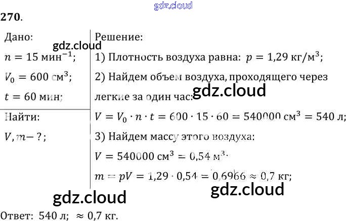 Ответ на задание 270 Сборник задач Физика за 7, 8, 9 (седьмой, восьмой, девятый) класс Лукашик, Иванова 2011