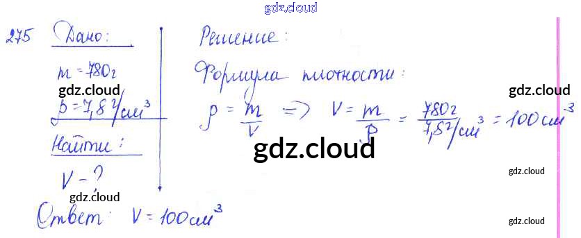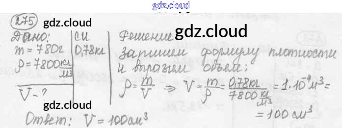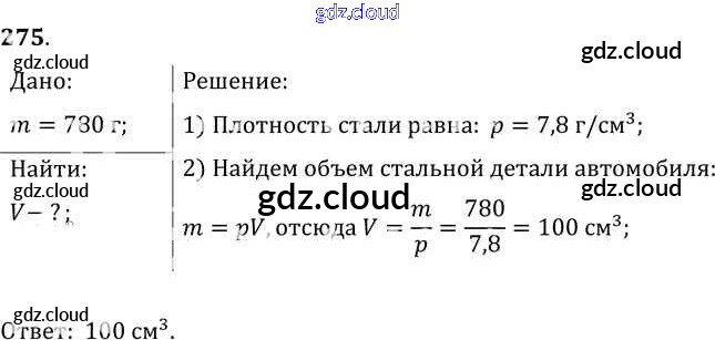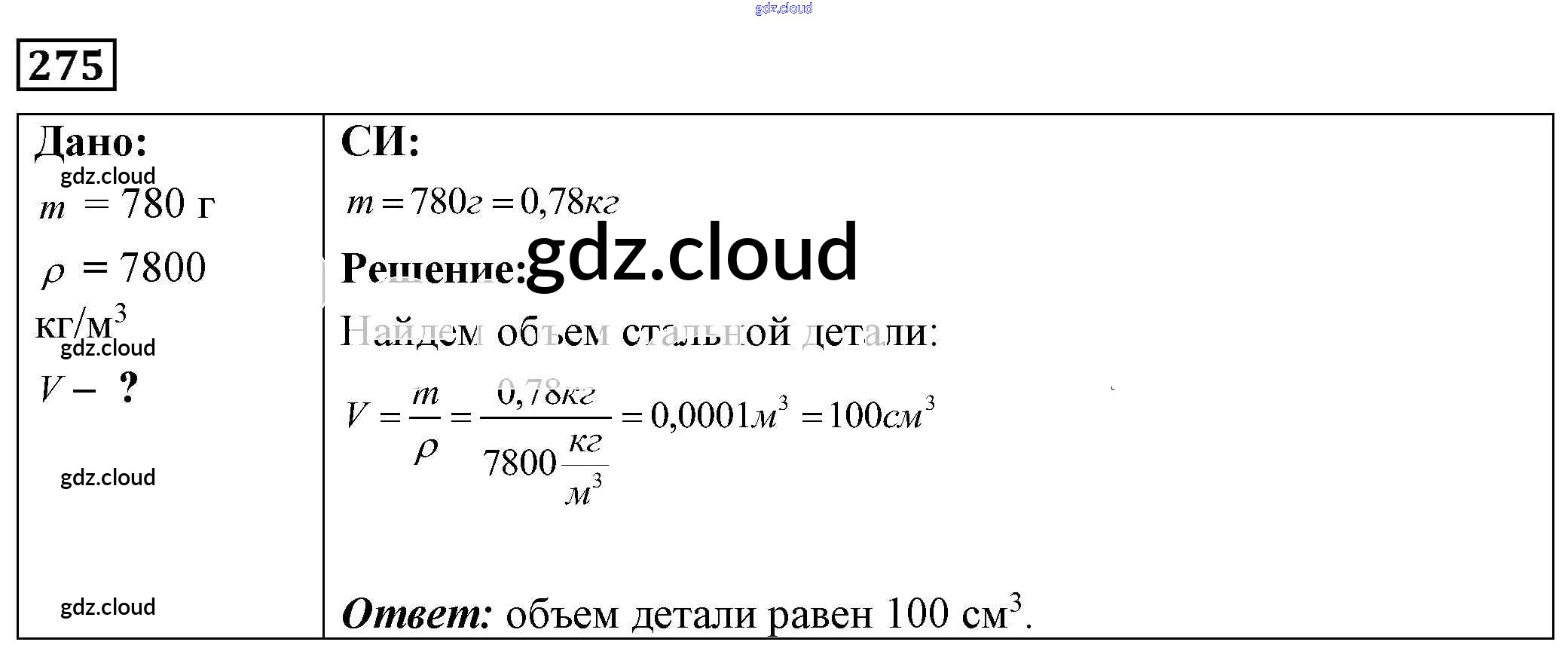 Ответ на задание 275 Сборник задач Физика за 7, 8, 9 (седьмой, восьмой, девятый) класс Лукашик, Иванова 2011