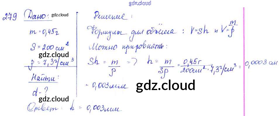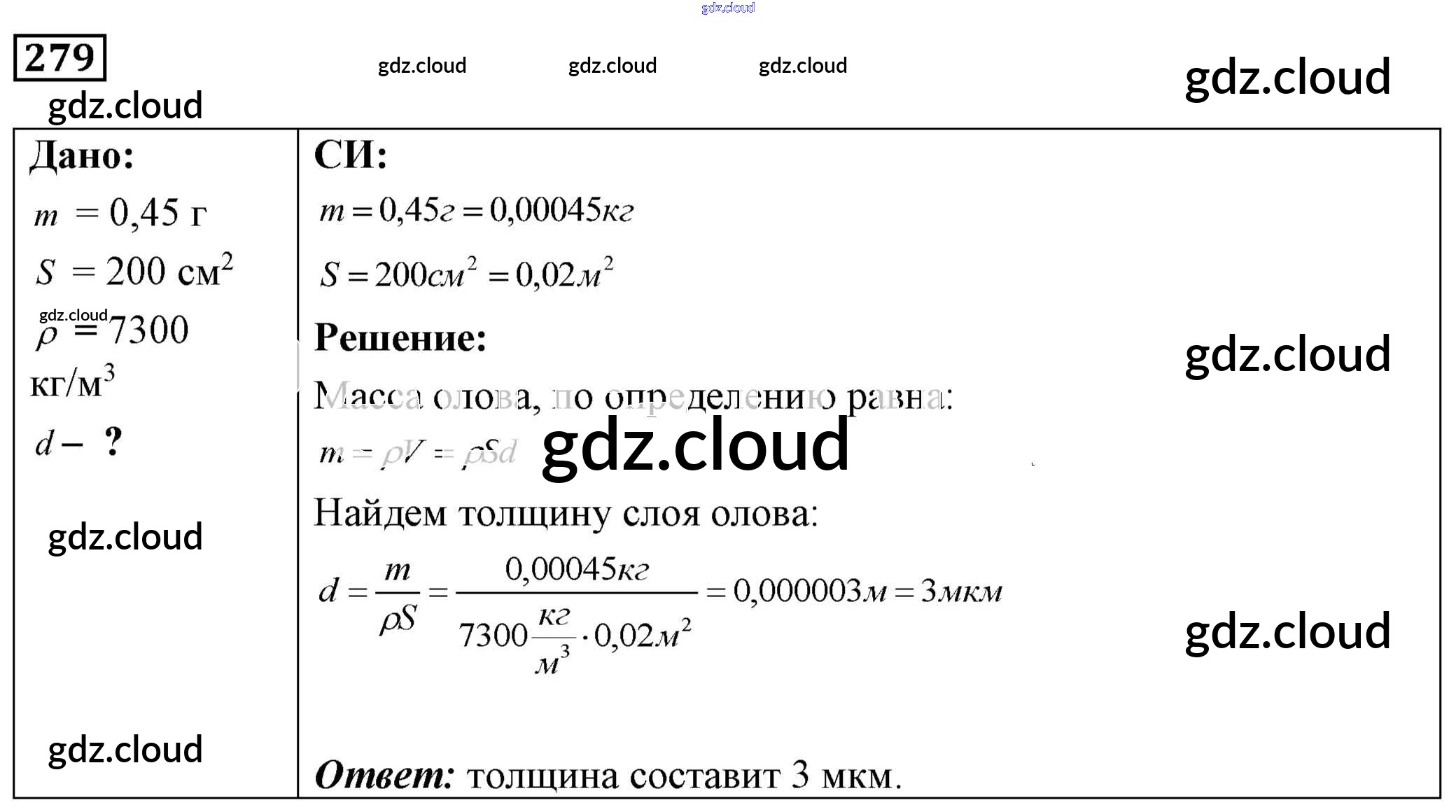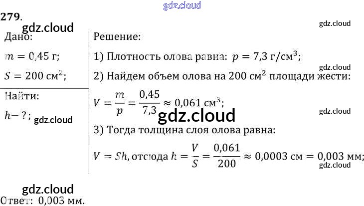 Ответ на задание 279 Сборник задач Физика за 7, 8, 9 (седьмой, восьмой, девятый) класс Лукашик, Иванова 2011