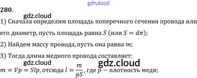 Ответ на задание 280 Сборник задач Физика за 7, 8, 9 (седьмой, восьмой, девятый) класс Лукашик, Иванова 2011