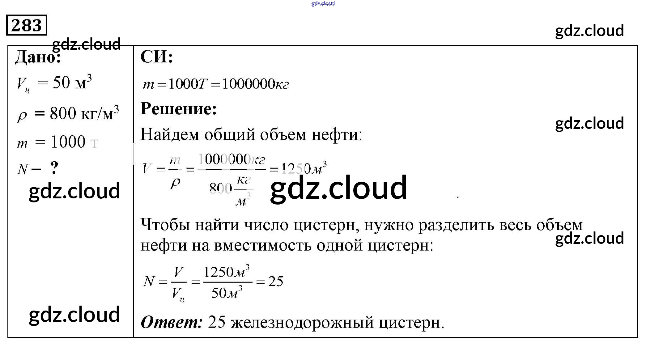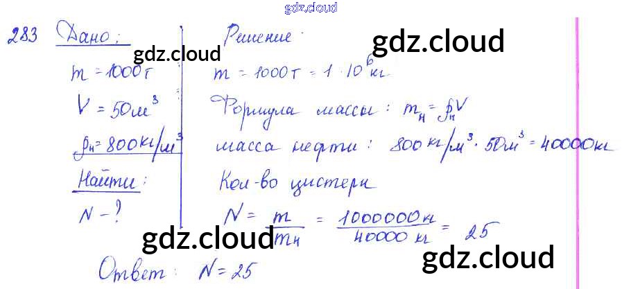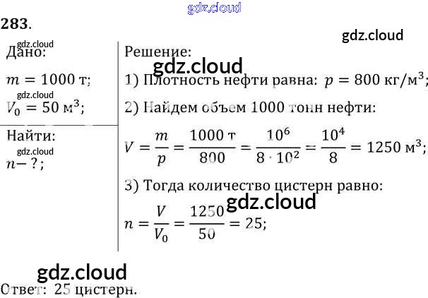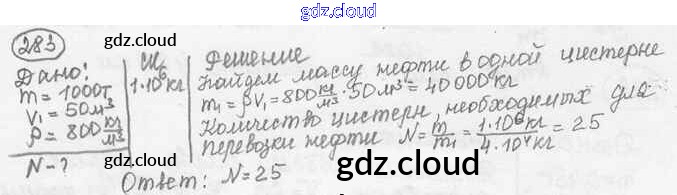 Ответ на задание 283 Сборник задач Физика за 7, 8, 9 (седьмой, восьмой, девятый) класс Лукашик, Иванова 2011
