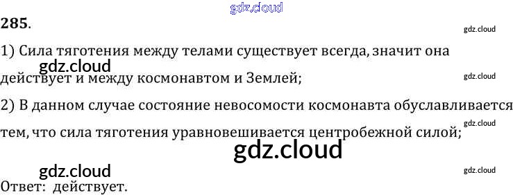 Ответ на задание 285 Сборник задач Физика за 7, 8, 9 (седьмой, восьмой, девятый) класс Лукашик, Иванова 2011