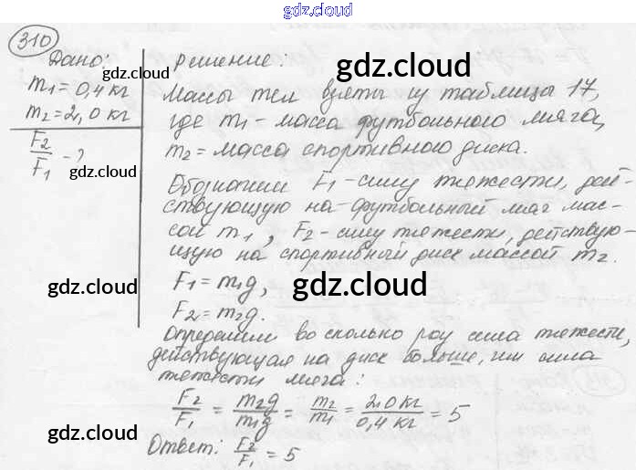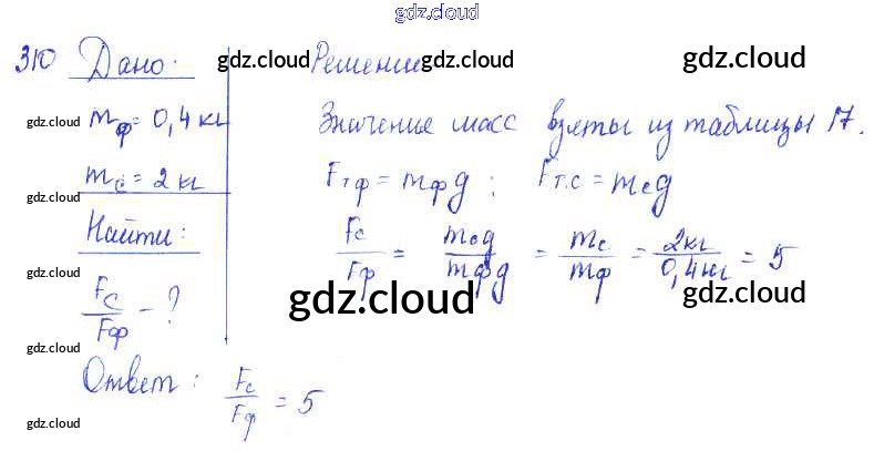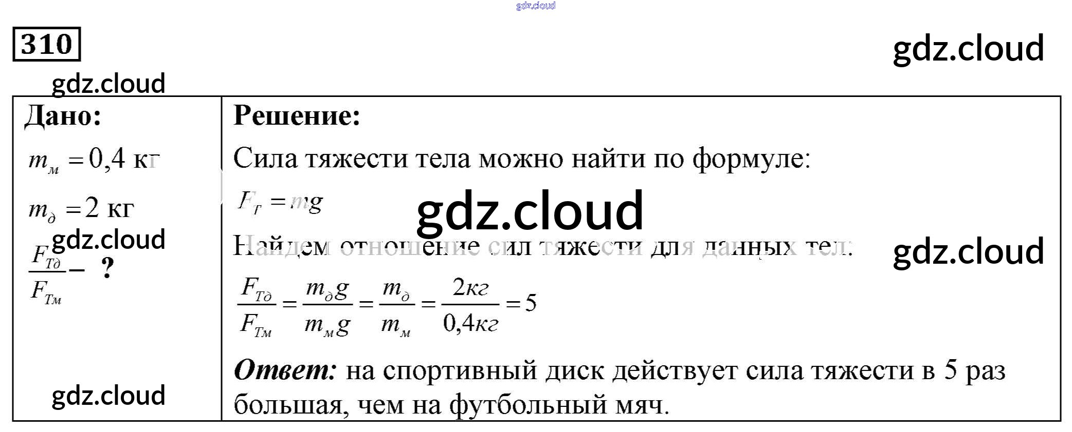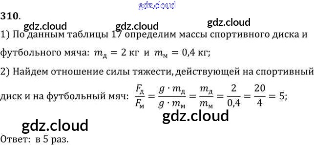 Ответ на задание 310 Сборник задач Физика за 7, 8, 9 (седьмой, восьмой, девятый) класс Лукашик, Иванова 2011