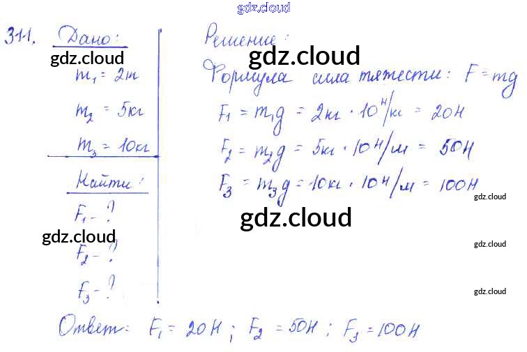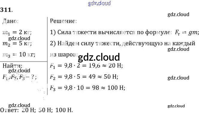 Ответ на задание 311 Сборник задач Физика за 7, 8, 9 (седьмой, восьмой, девятый) класс Лукашик, Иванова 2011