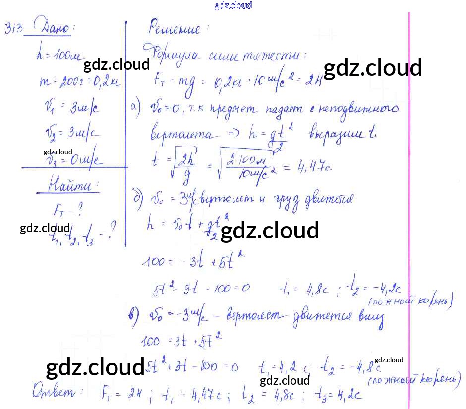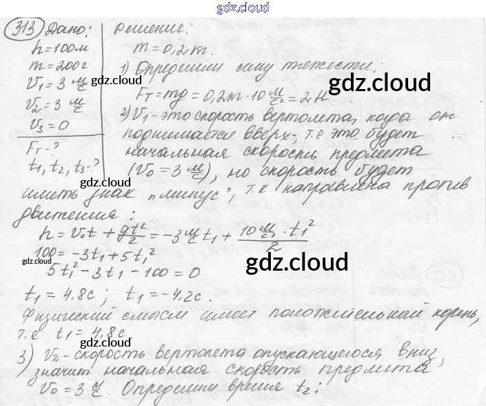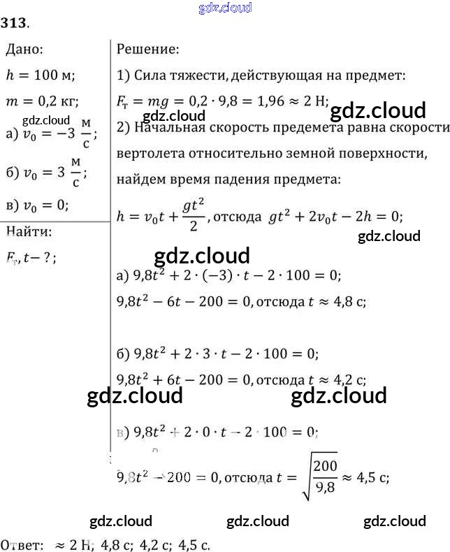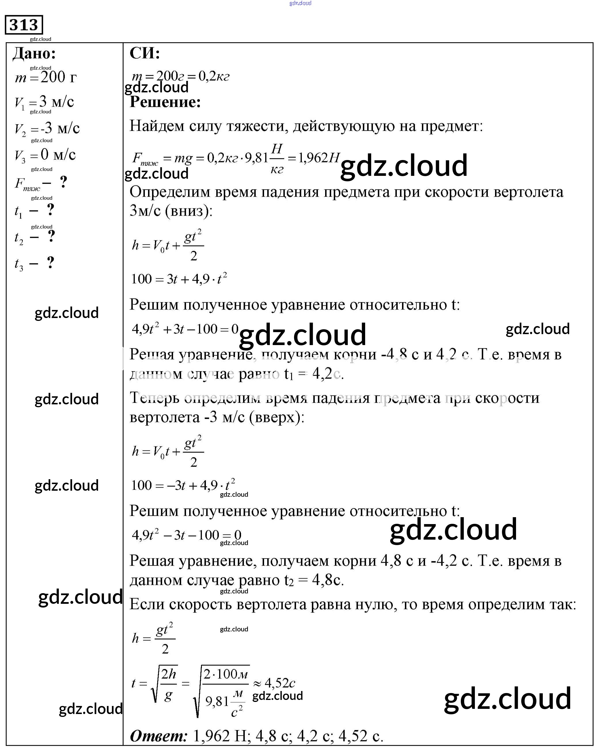 Ответ на задание 313 Сборник задач Физика за 7, 8, 9 (седьмой, восьмой, девятый) класс Лукашик, Иванова 2011