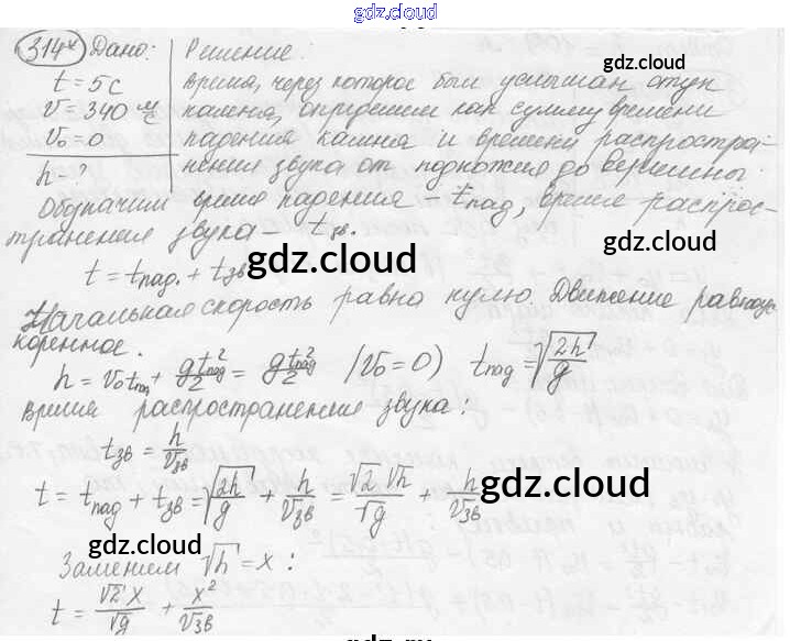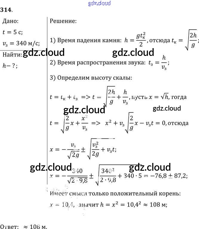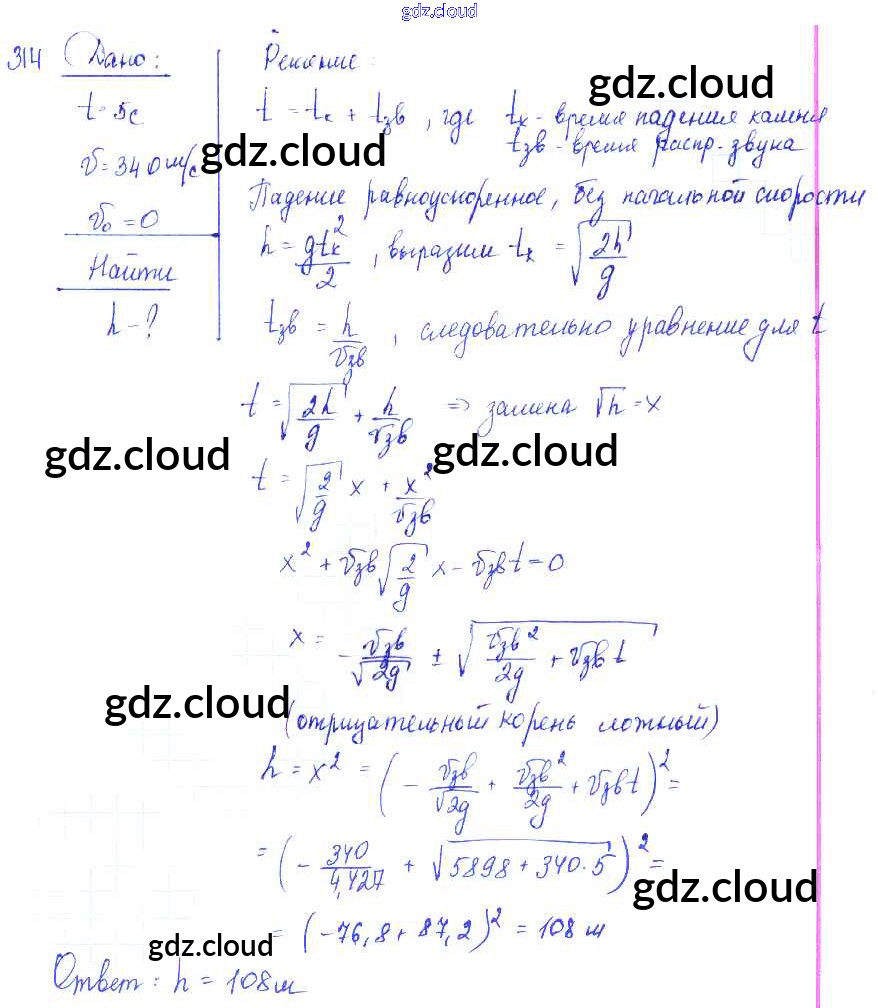 Ответ на задание 314 Сборник задач Физика за 7, 8, 9 (седьмой, восьмой, девятый) класс Лукашик, Иванова 2011