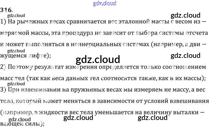 Ответ на задание 316 Сборник задач Физика за 7, 8, 9 (седьмой, восьмой, девятый) класс Лукашик, Иванова 2011