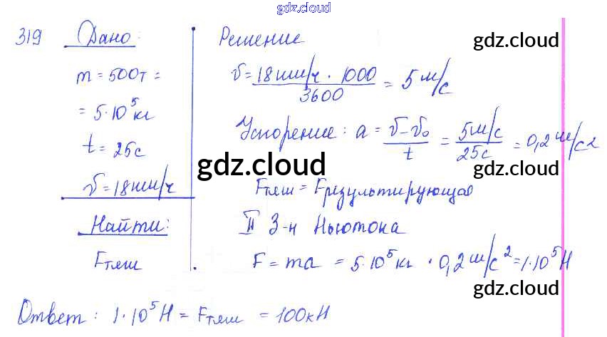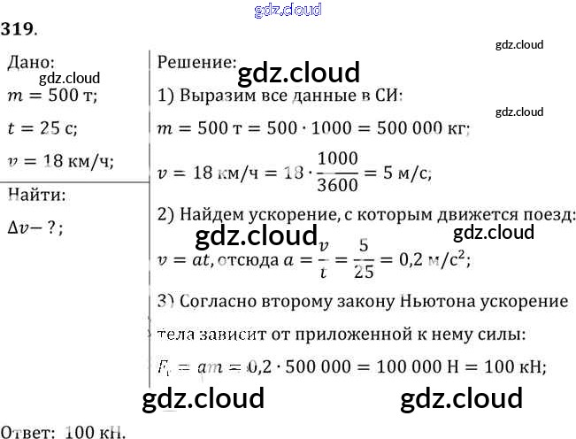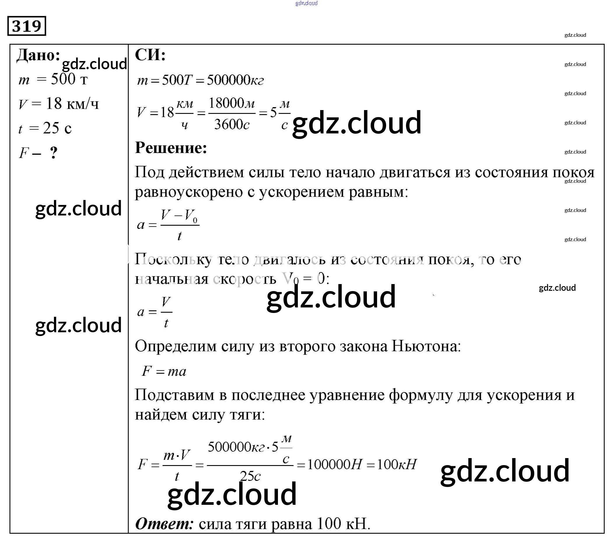Ответ на задание 319 Сборник задач Физика за 7, 8, 9 (седьмой, восьмой, девятый) класс Лукашик, Иванова 2011