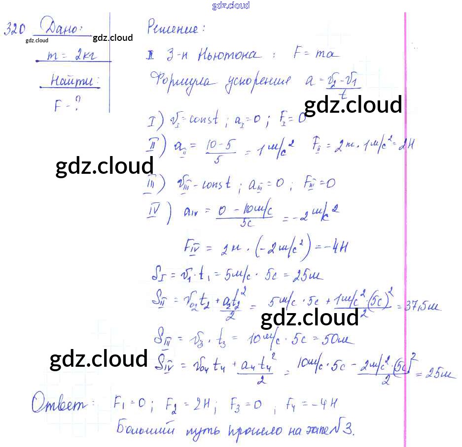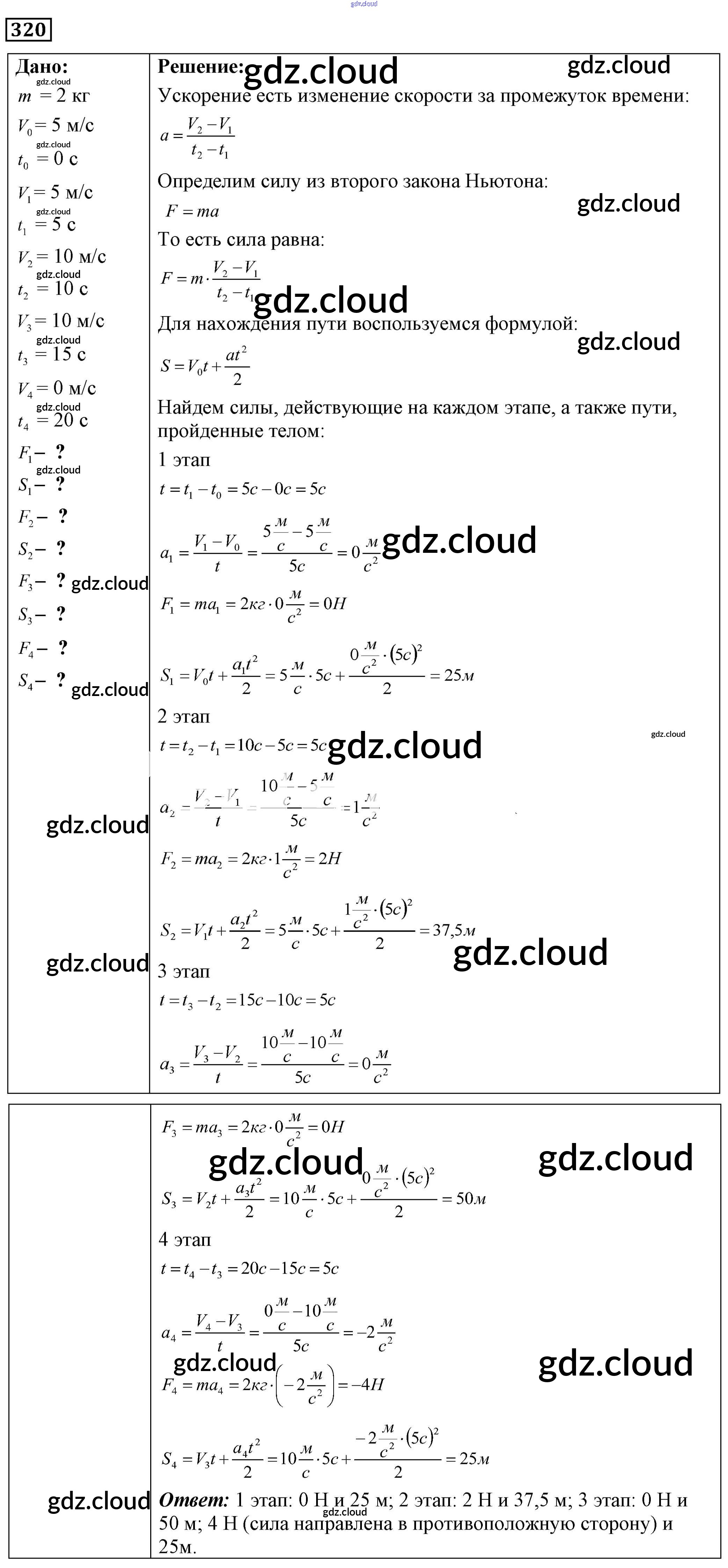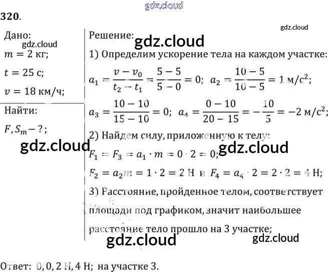 Ответ на задание 320 Сборник задач Физика за 7, 8, 9 (седьмой, восьмой, девятый) класс Лукашик, Иванова 2011
