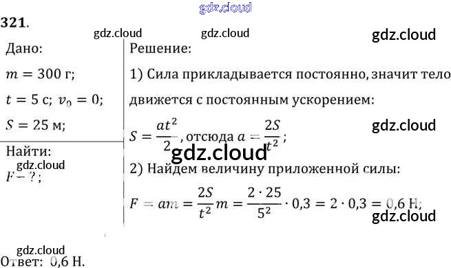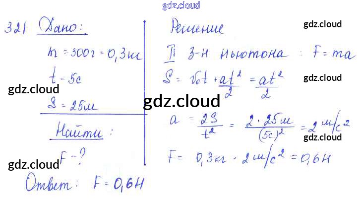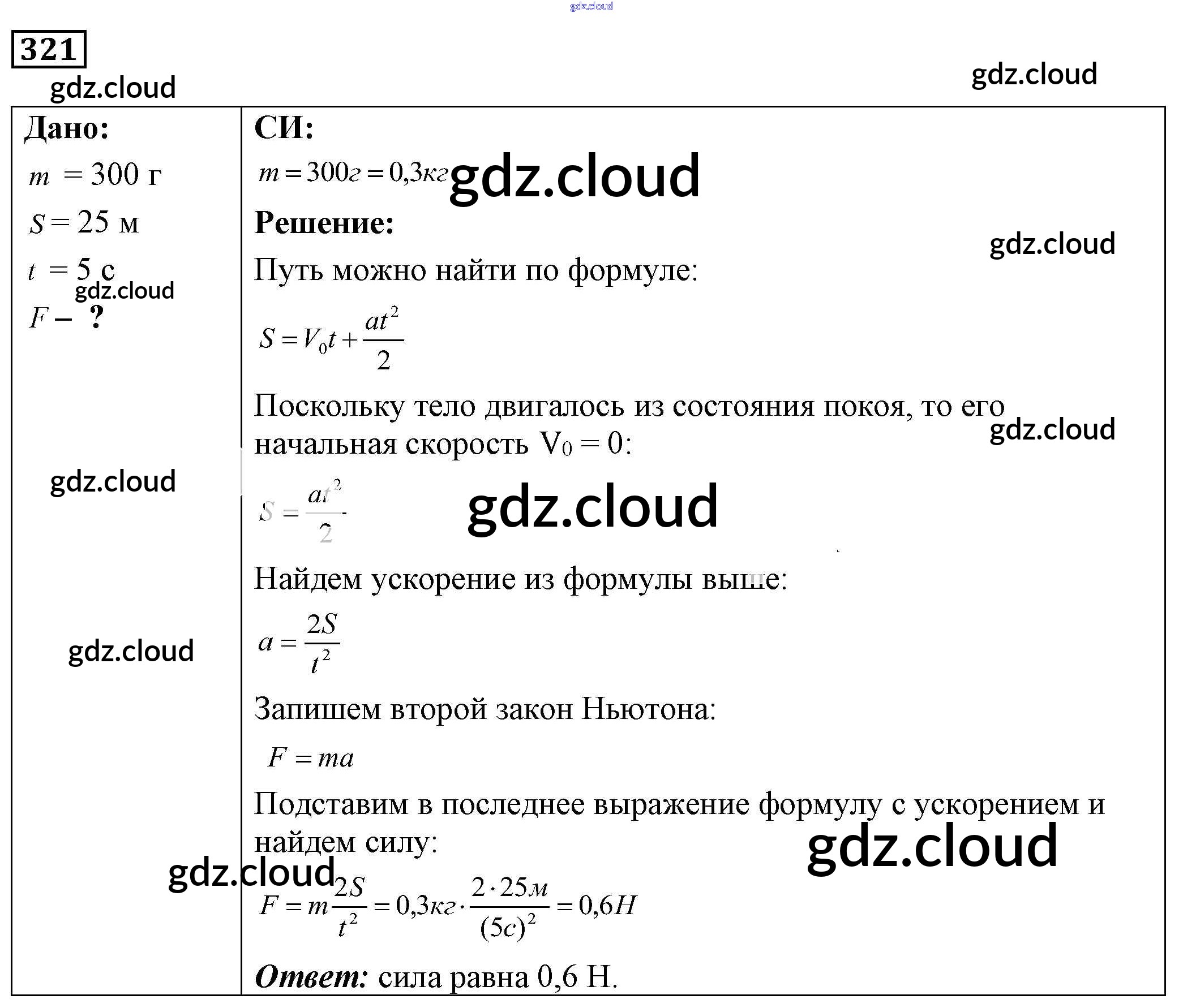 Ответ на задание 321 Сборник задач Физика за 7, 8, 9 (седьмой, восьмой, девятый) класс Лукашик, Иванова 2011