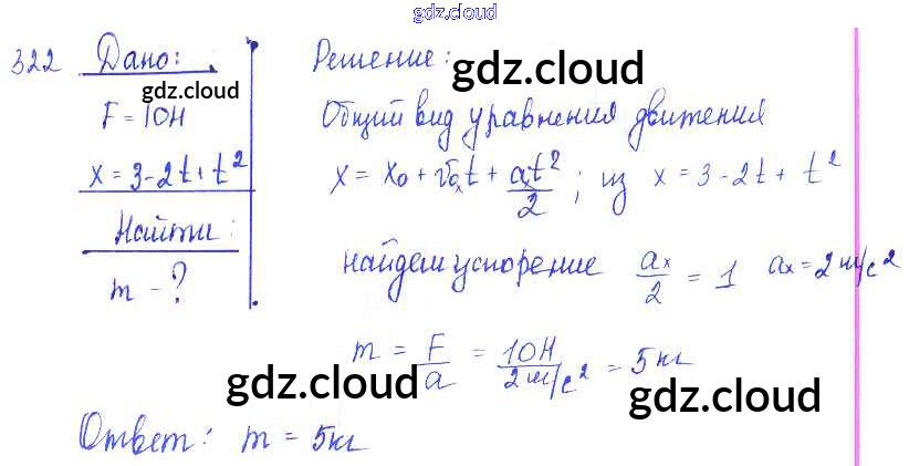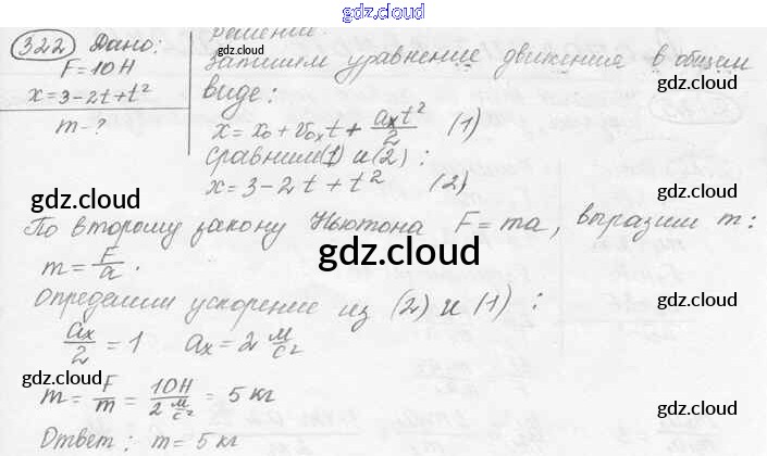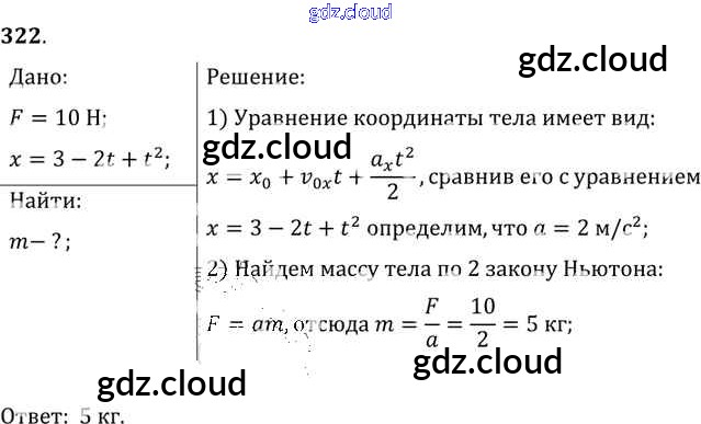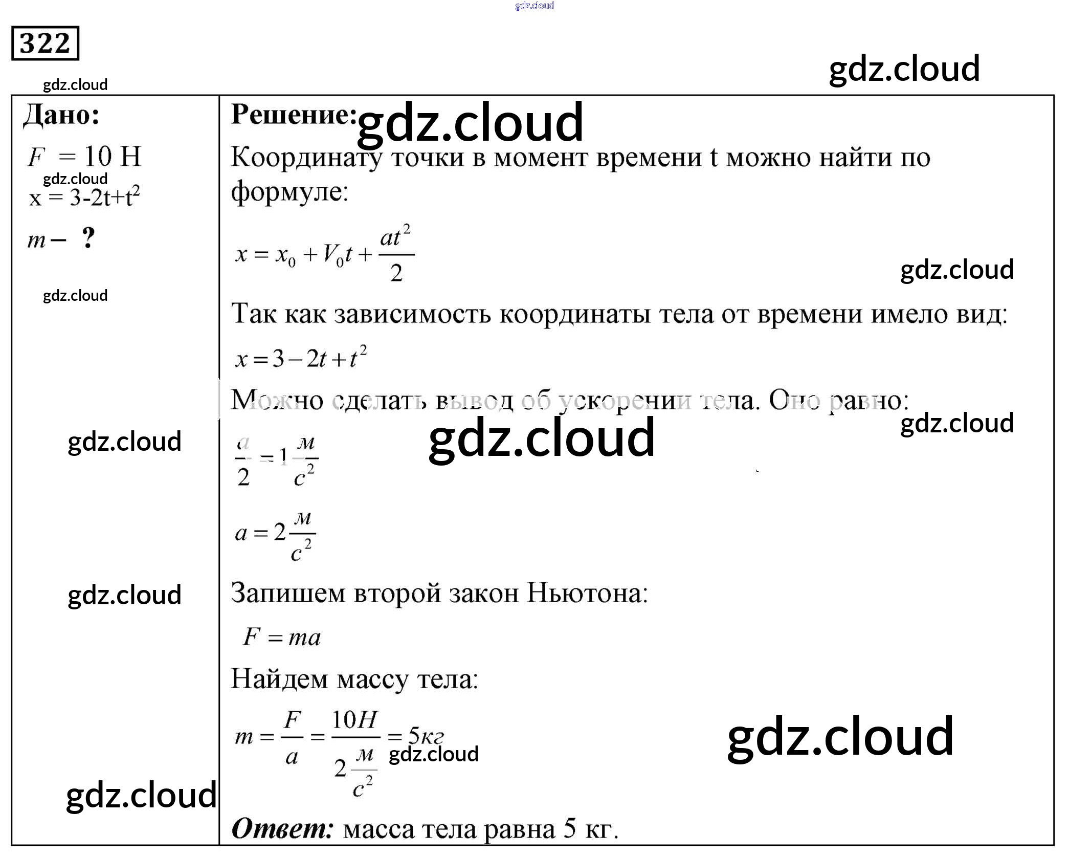 Ответ на задание 322 Сборник задач Физика за 7, 8, 9 (седьмой, восьмой, девятый) класс Лукашик, Иванова 2011