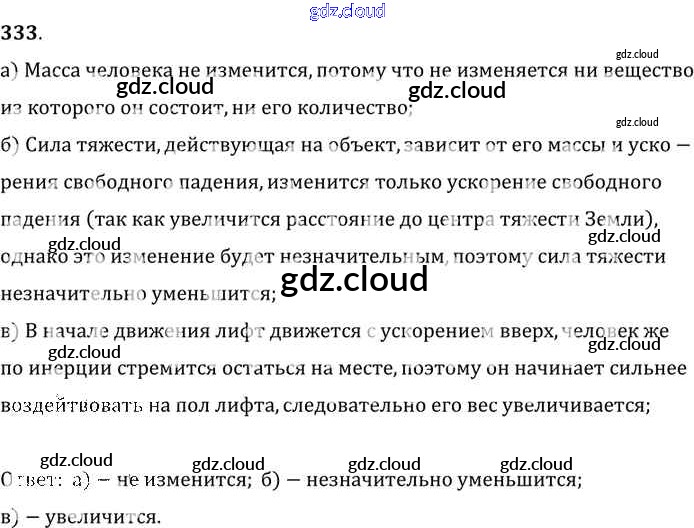 Ответ на задание 333 Сборник задач Физика за 7, 8, 9 (седьмой, восьмой, девятый) класс Лукашик, Иванова 2011