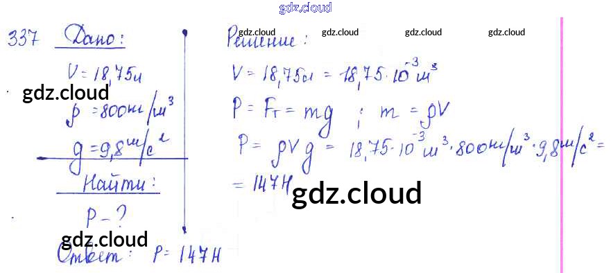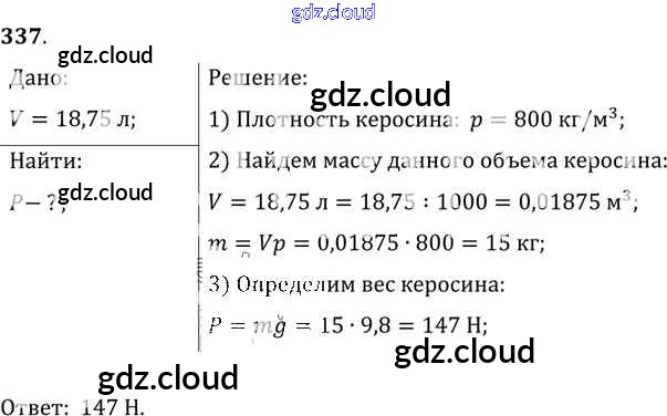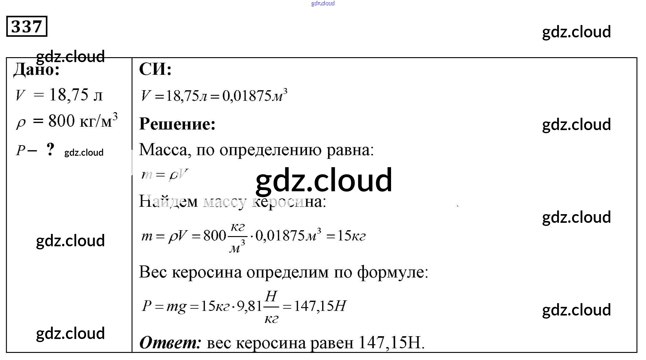Ответ на задание 337 Сборник задач Физика за 7, 8, 9 (седьмой, восьмой, девятый) класс Лукашик, Иванова 2011