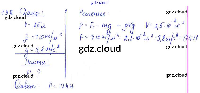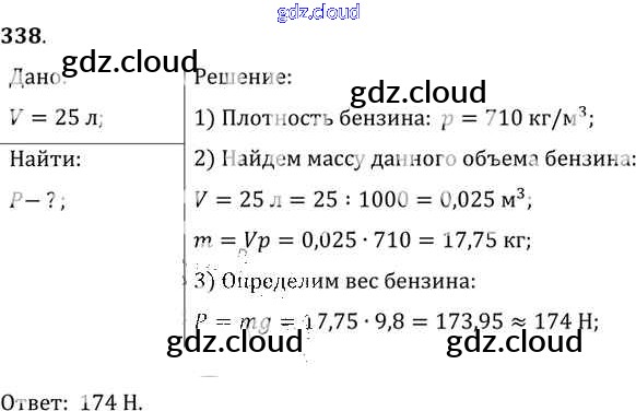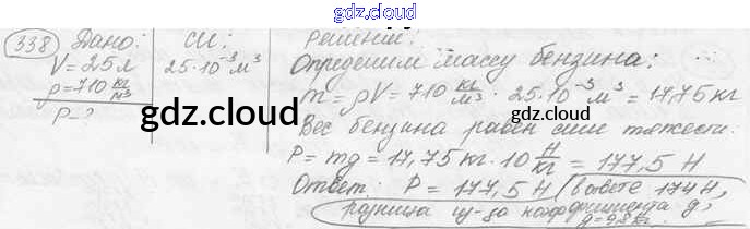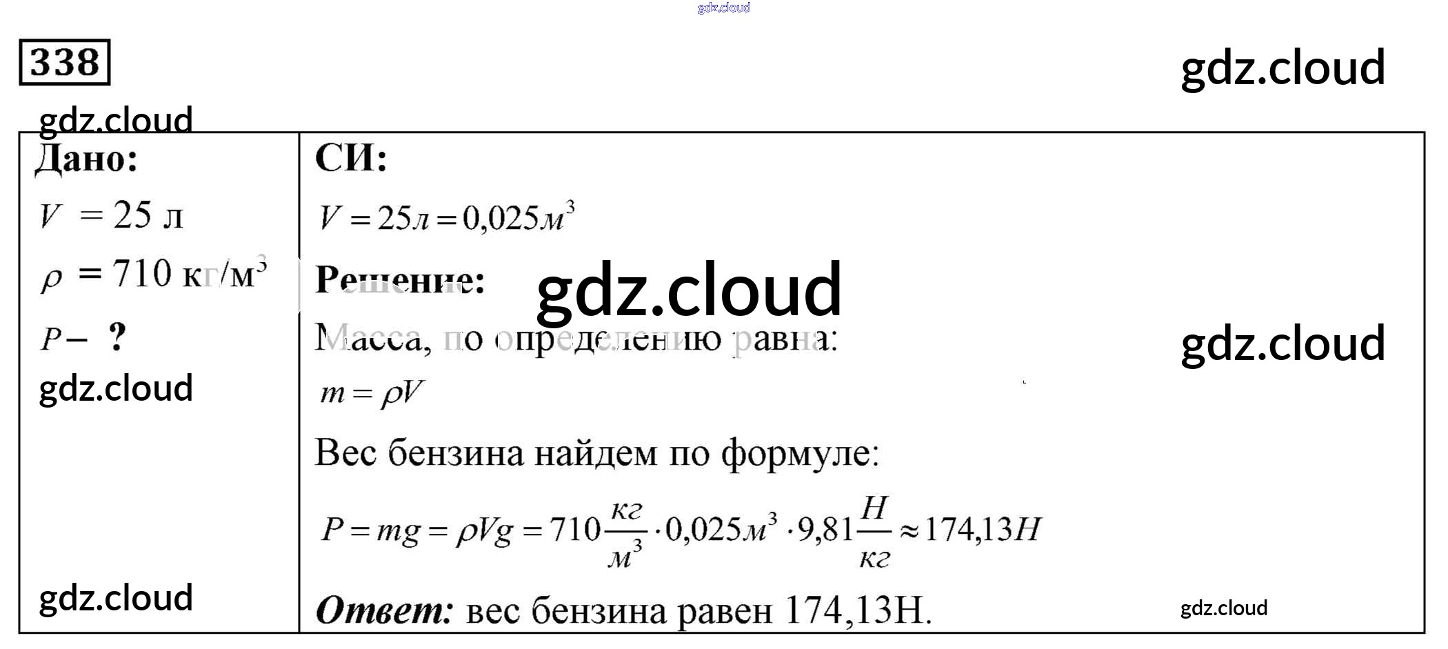 Ответ на задание 338 Сборник задач Физика за 7, 8, 9 (седьмой, восьмой, девятый) класс Лукашик, Иванова 2011