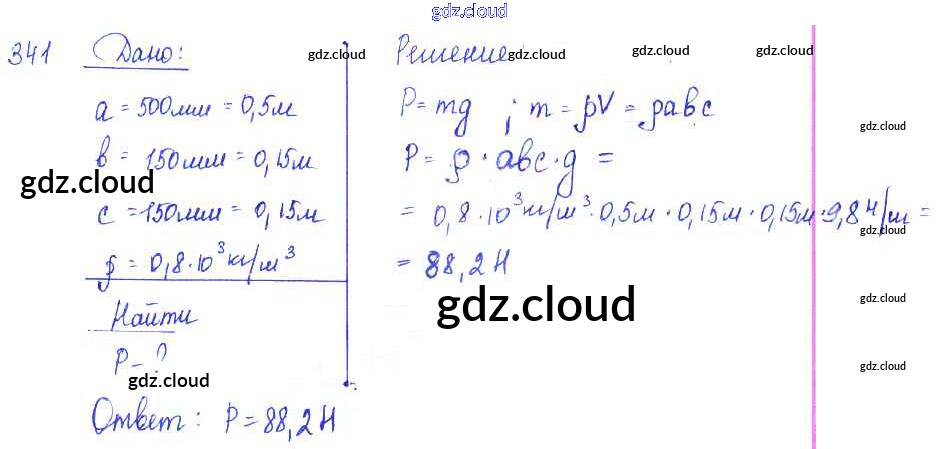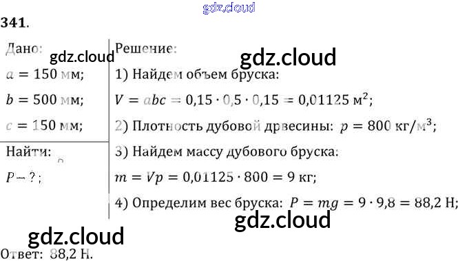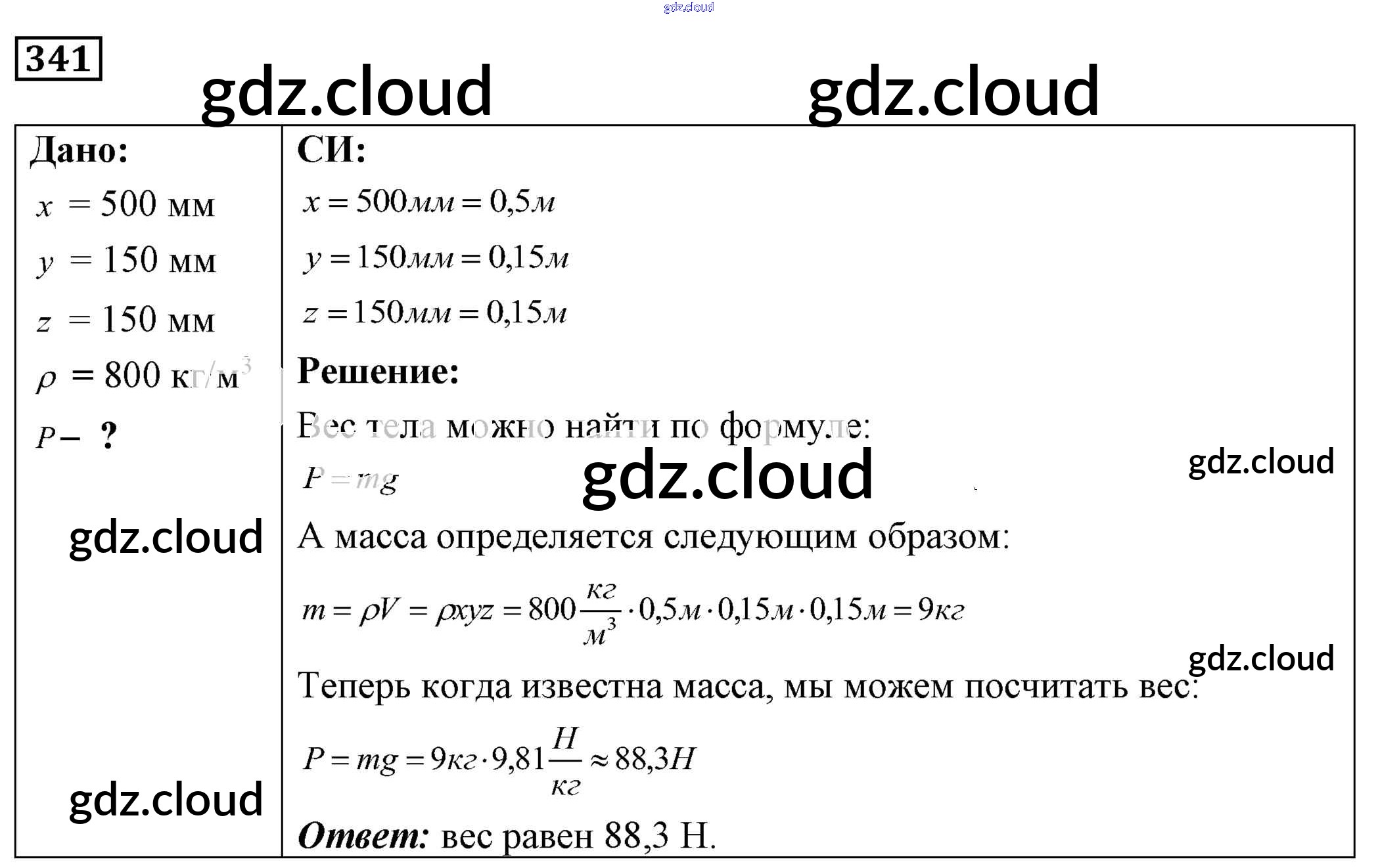 Ответ на задание 341 Сборник задач Физика за 7, 8, 9 (седьмой, восьмой, девятый) класс Лукашик, Иванова 2011
