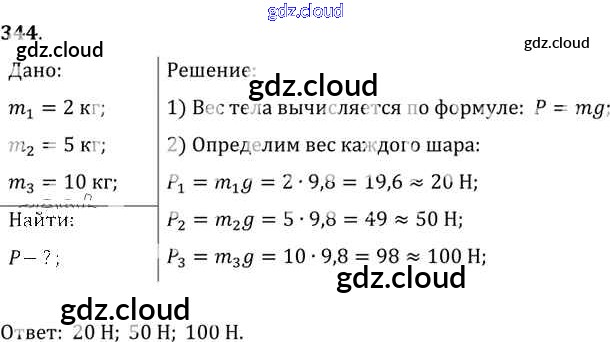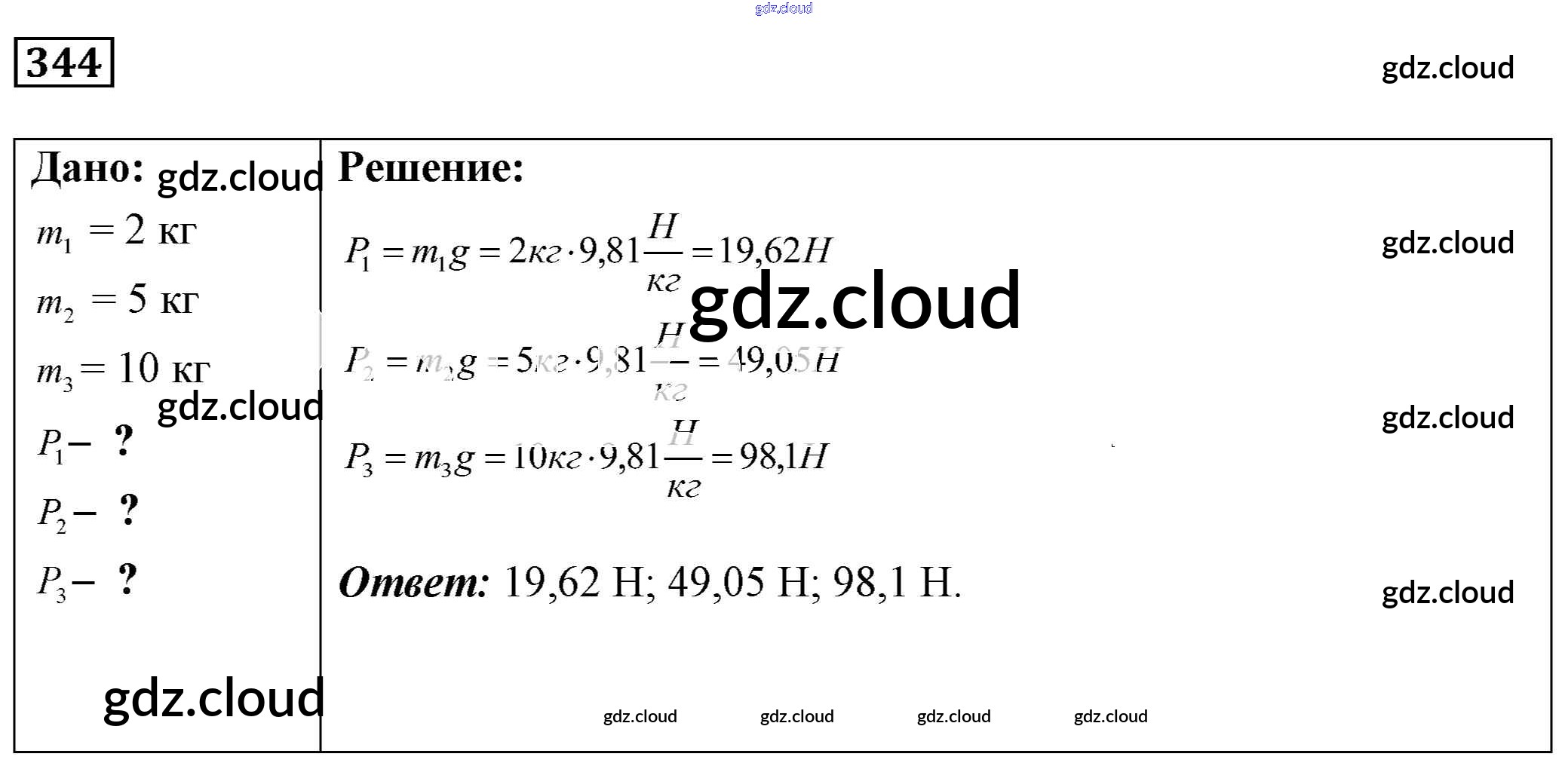 Ответ на задание 344 Сборник задач Физика за 7, 8, 9 (седьмой, восьмой, девятый) класс Лукашик, Иванова 2011