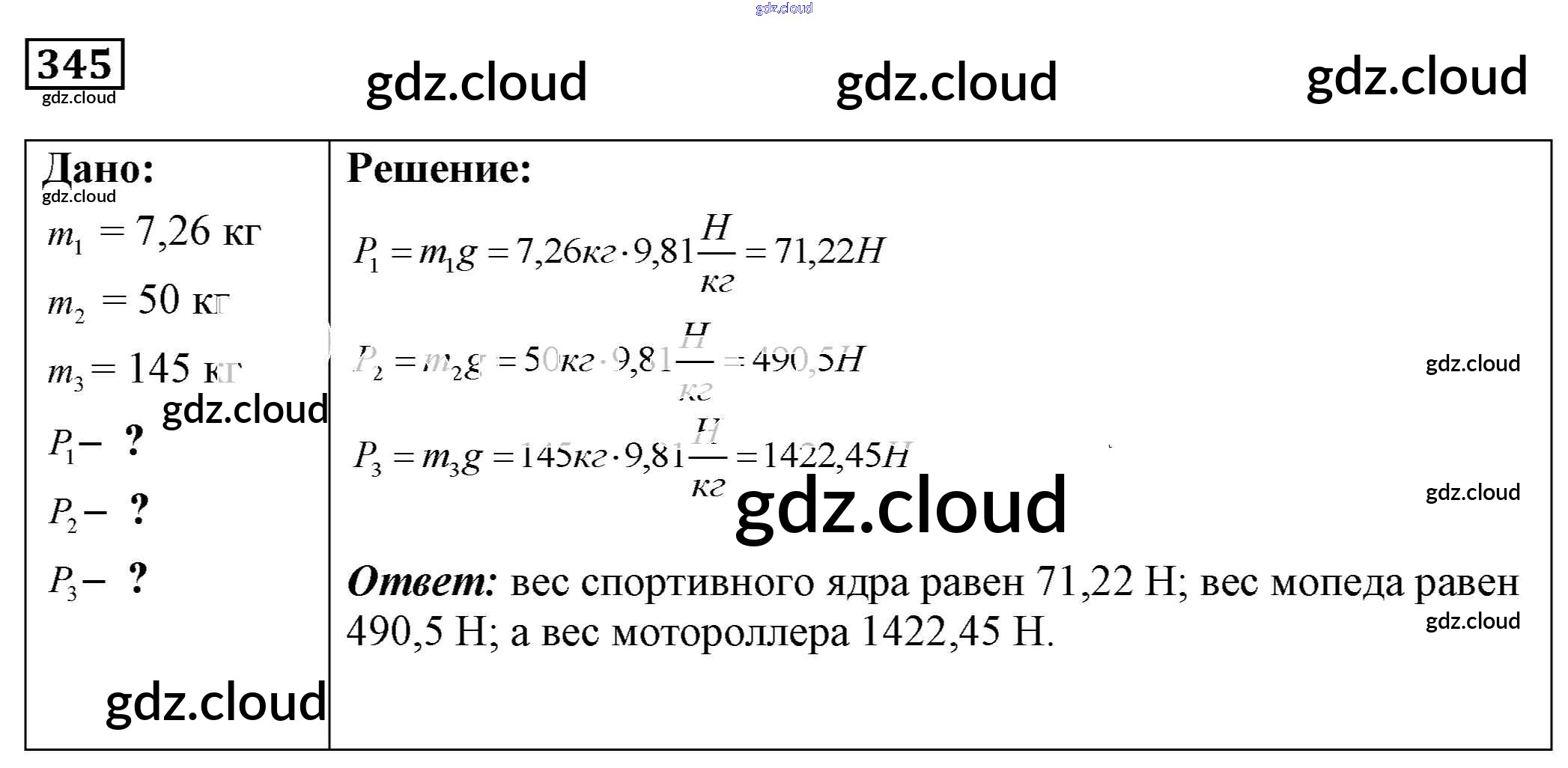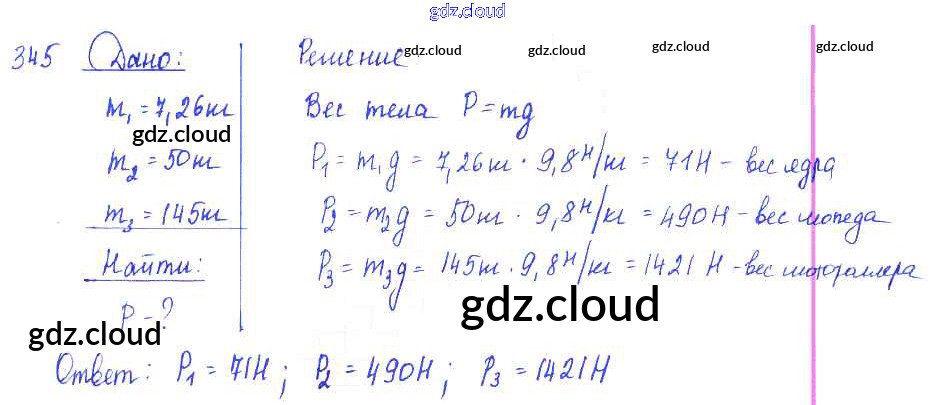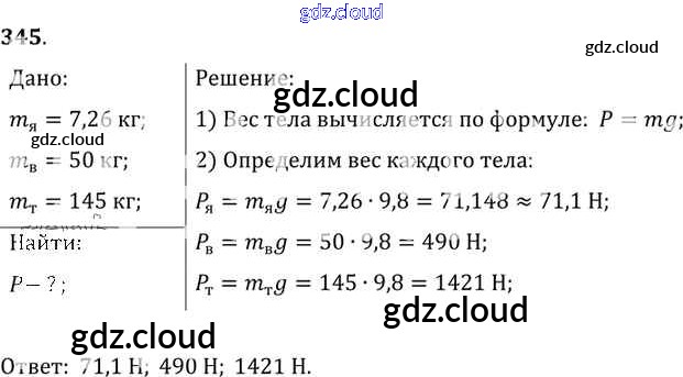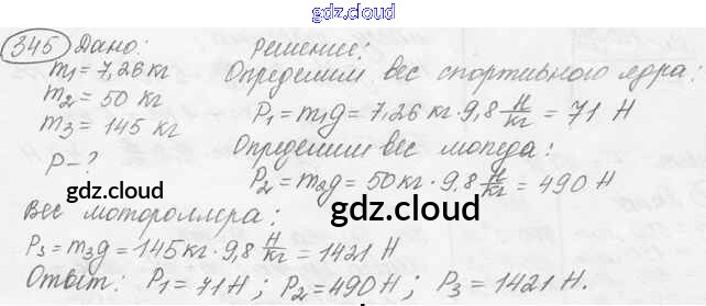 Ответ на задание 345 Сборник задач Физика за 7, 8, 9 (седьмой, восьмой, девятый) класс Лукашик, Иванова 2011